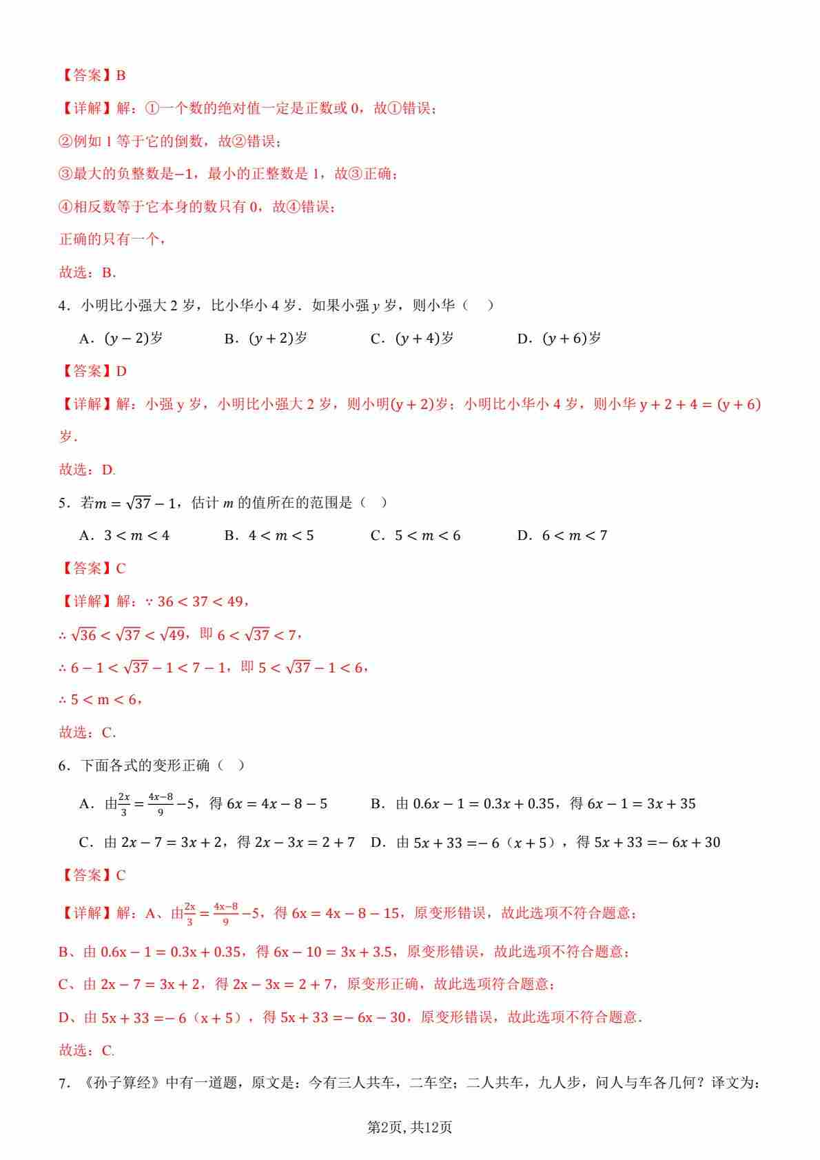 首页 > 全部 > 第三次月考 > 七年级浙教数学第三次月考卷(全解全析)