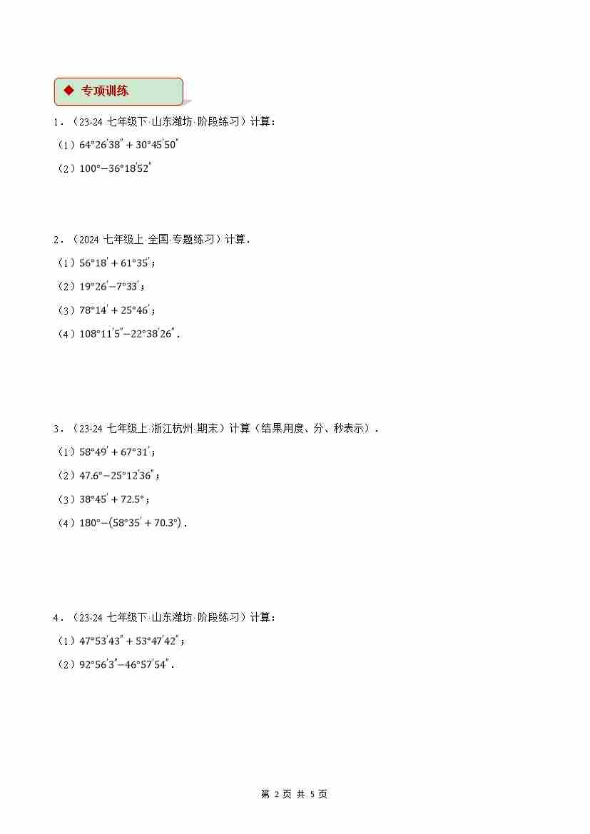 首页 > 全部 > 计算题专题 > 专题17 角度的四则运算(原卷版)