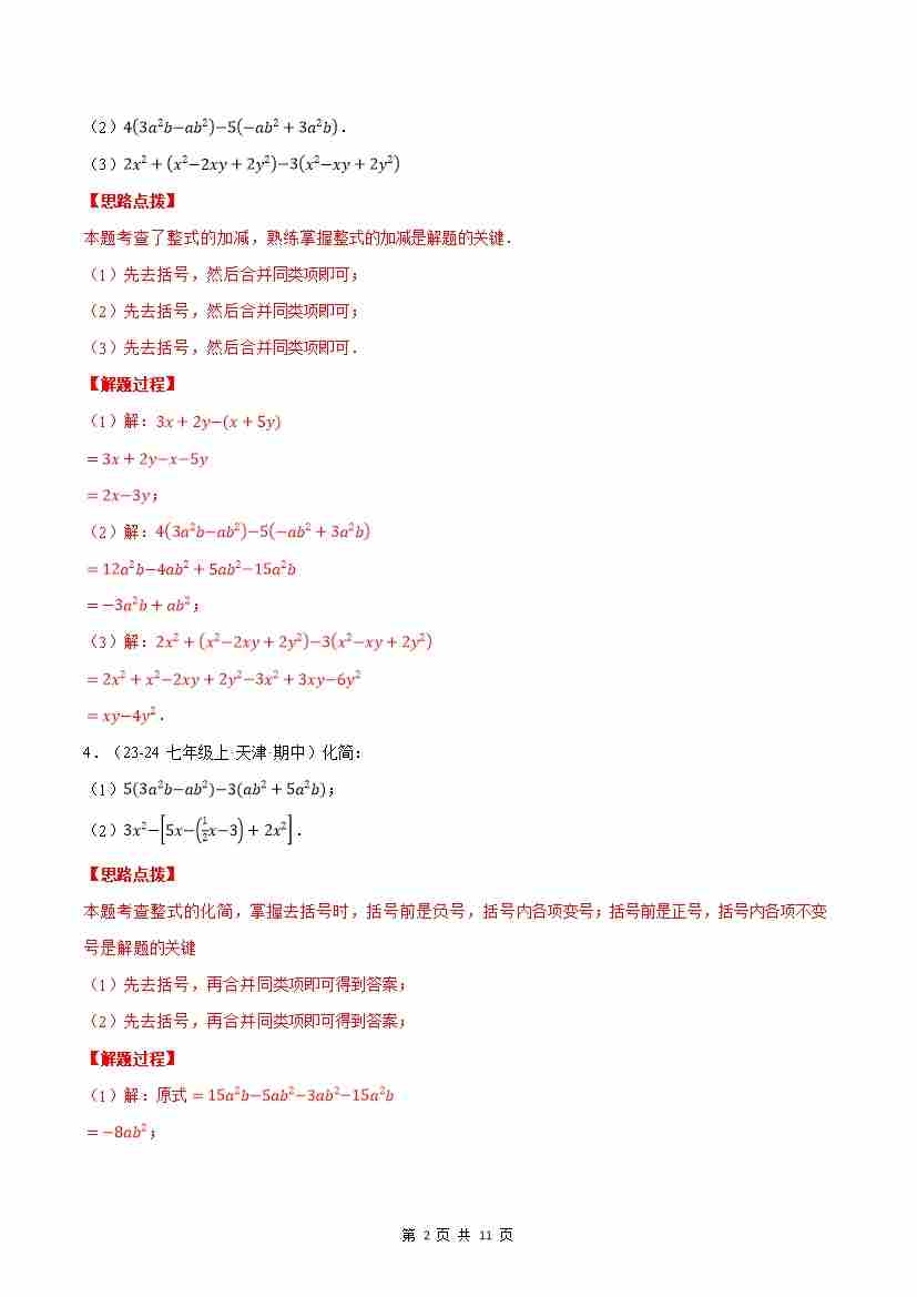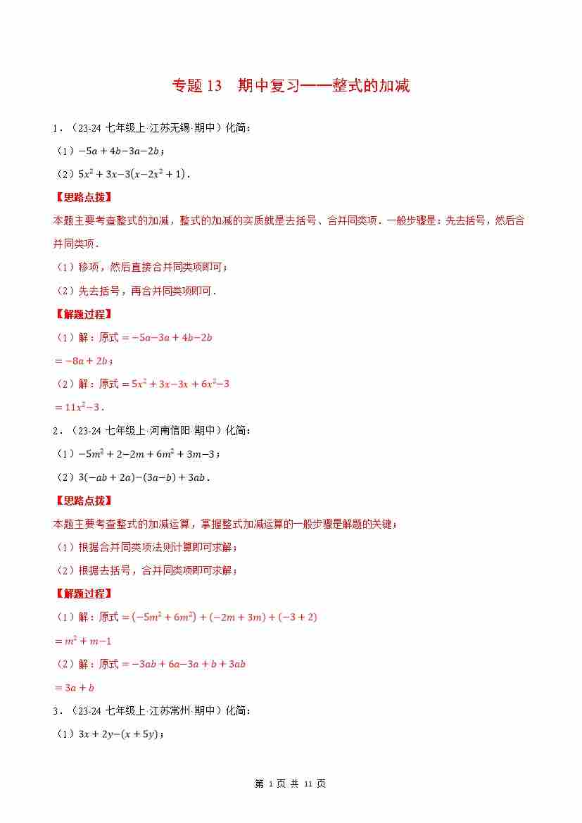 首页 > 全部 > 计算题专题 > 专题13 期中复习——整式的加减(解析版)