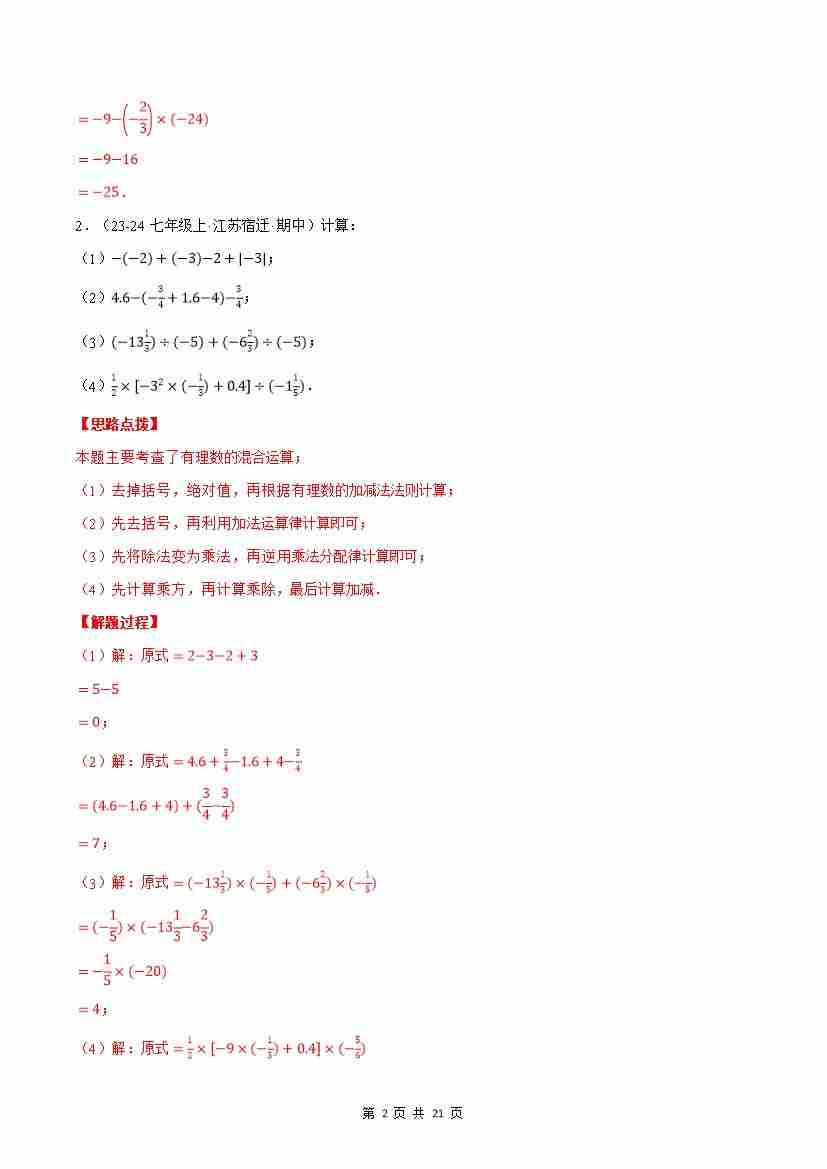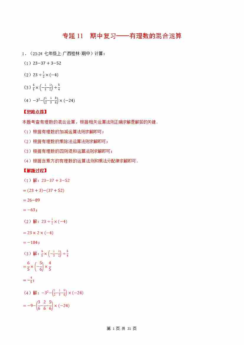 首页 > 全部 > 计算题专题 > 专题11 期中复习——有理数的混合运算(解析版)