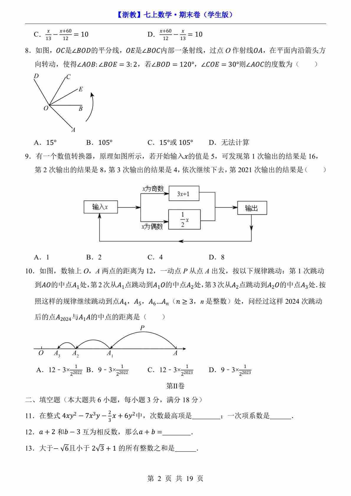 首页 > 全部 > 期末试卷 > 【浙教】7上数学期末卷(7上全册)