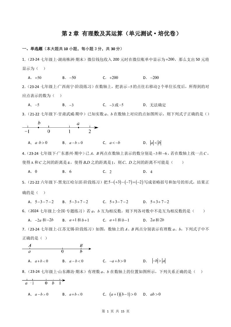 首页 > 全部 > 单元试卷 > 第2章 有理数及其运算(单元测试·培优卷)