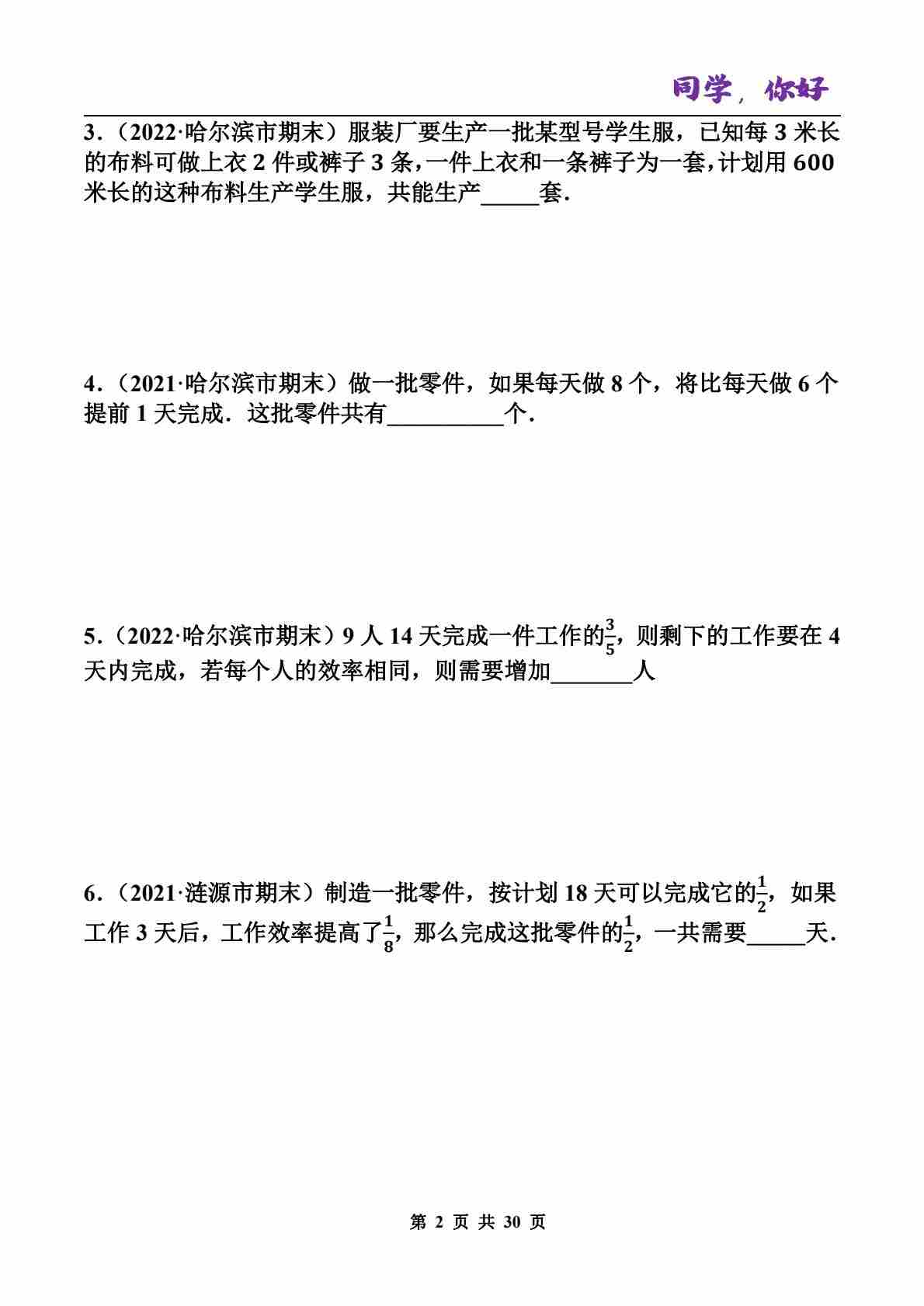 首页 > 全部 > 期中专项 > 七年级上册数学【期中】实际问题与一元一次方程专项