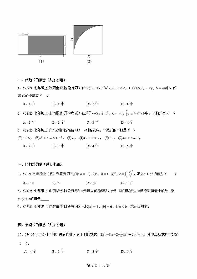 首页 > 全部 > 期中专项 > 【训练】专题04 代数式(考题猜想,易错必刷52题17种题型)(原题版)