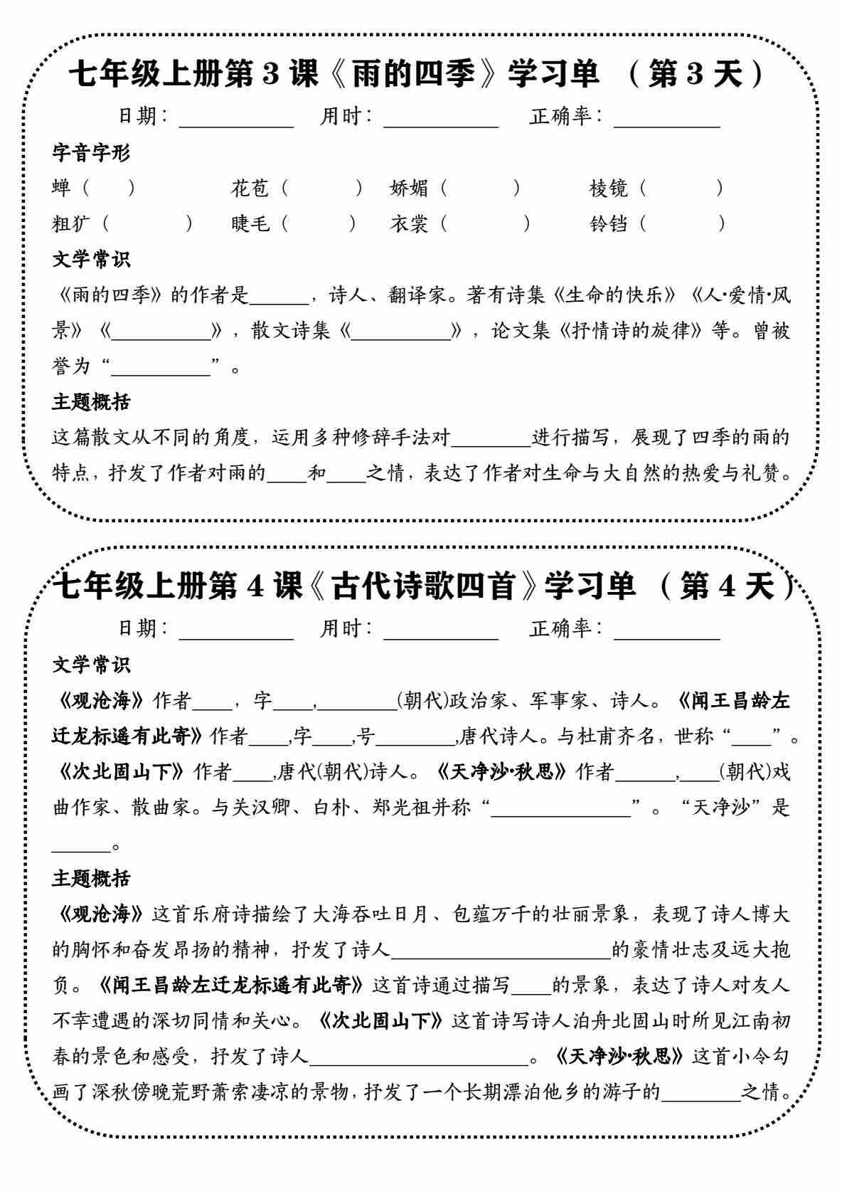 首页 > 全部 > 公众号作品 > 七上语文重点默写学习单一天一课(空白)