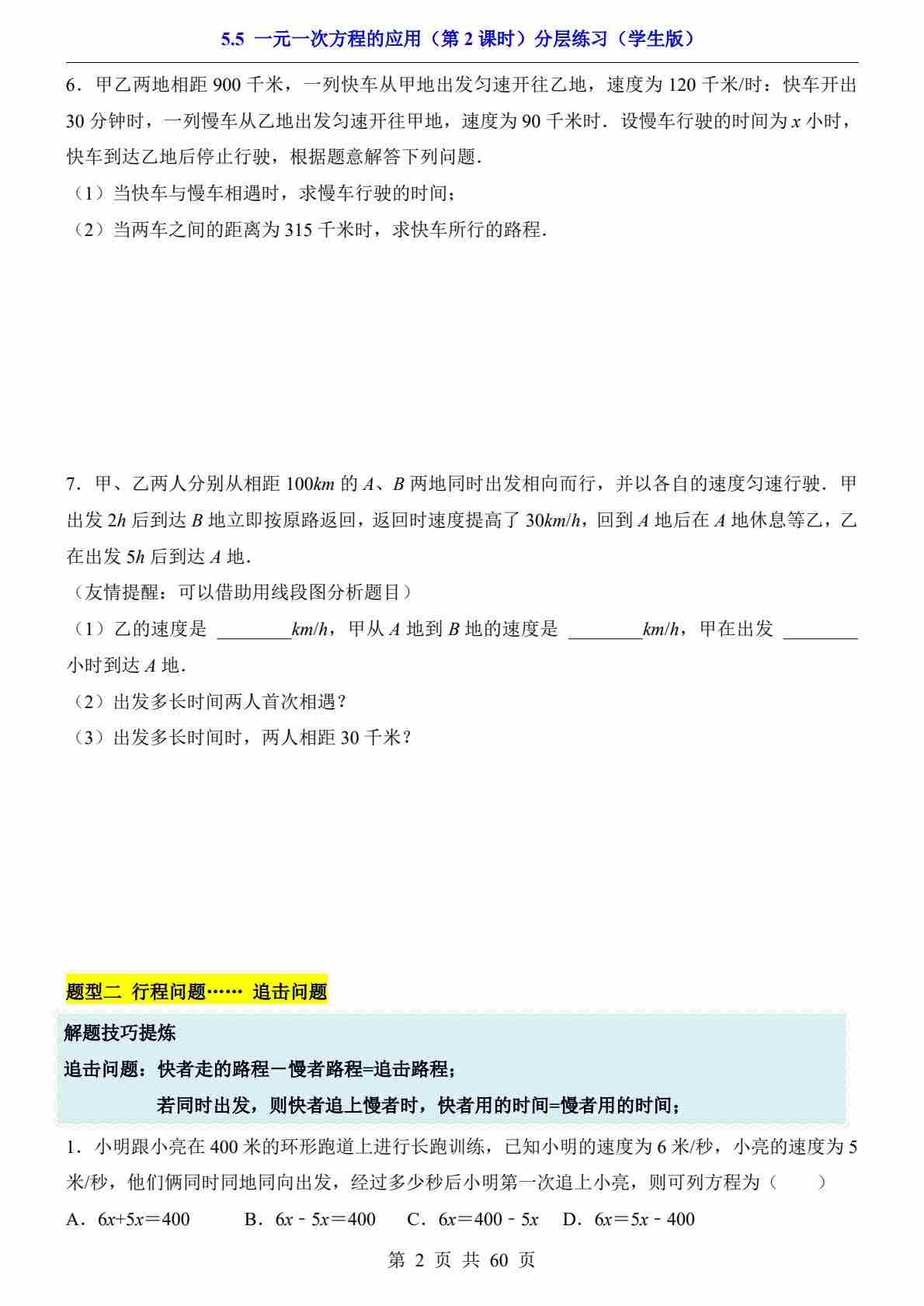 5.5 一元一次方程的应用 第2课时(分层练习)