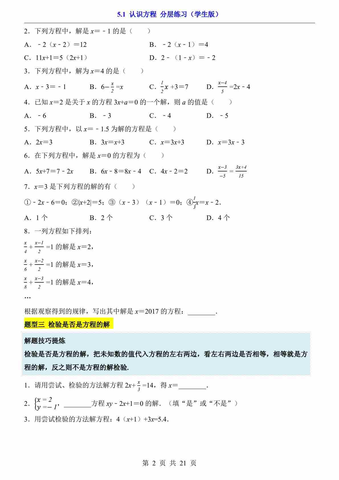 首页 > 全部 > 一课一练 > 5.1 认识方程-(分层练习)