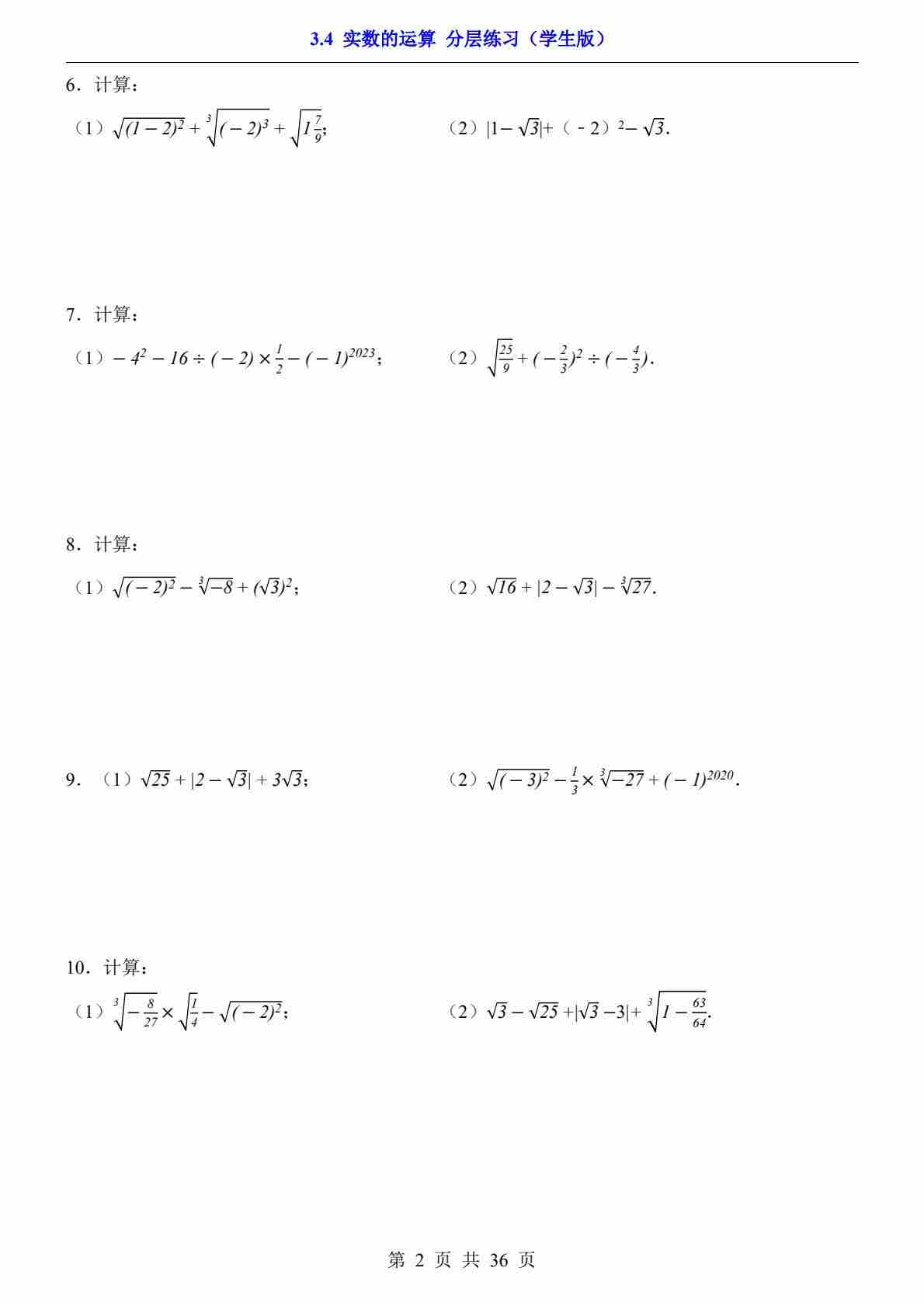 首页 > 全部 > 一课一练 > 3.4 实数的运算(分层练习)