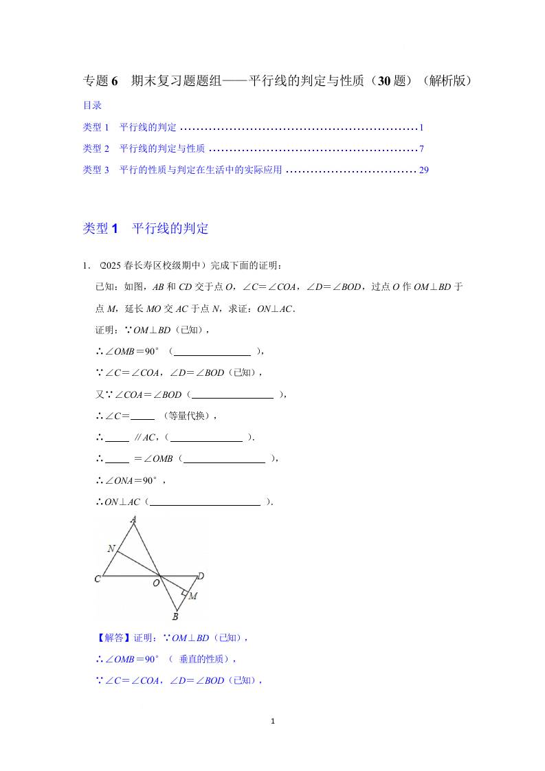 首页 > 全部 > 期末专项2 > 专题6 期末复习题题组——平行线的判定与性质(30题)2025年人教版7年级下册数学(高效学习) 专题6 期末复习题题组——平行线的判定与性质(30题)(解析版)