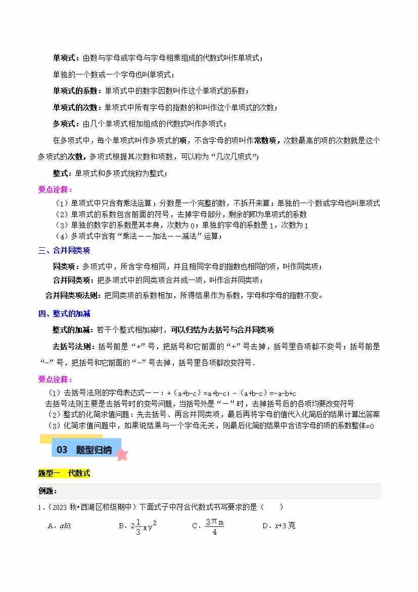 首页 > 全部 > 知识点归纳 > 第4章 代数式知识归纳与题型训练(6类题型清单)(原卷版)