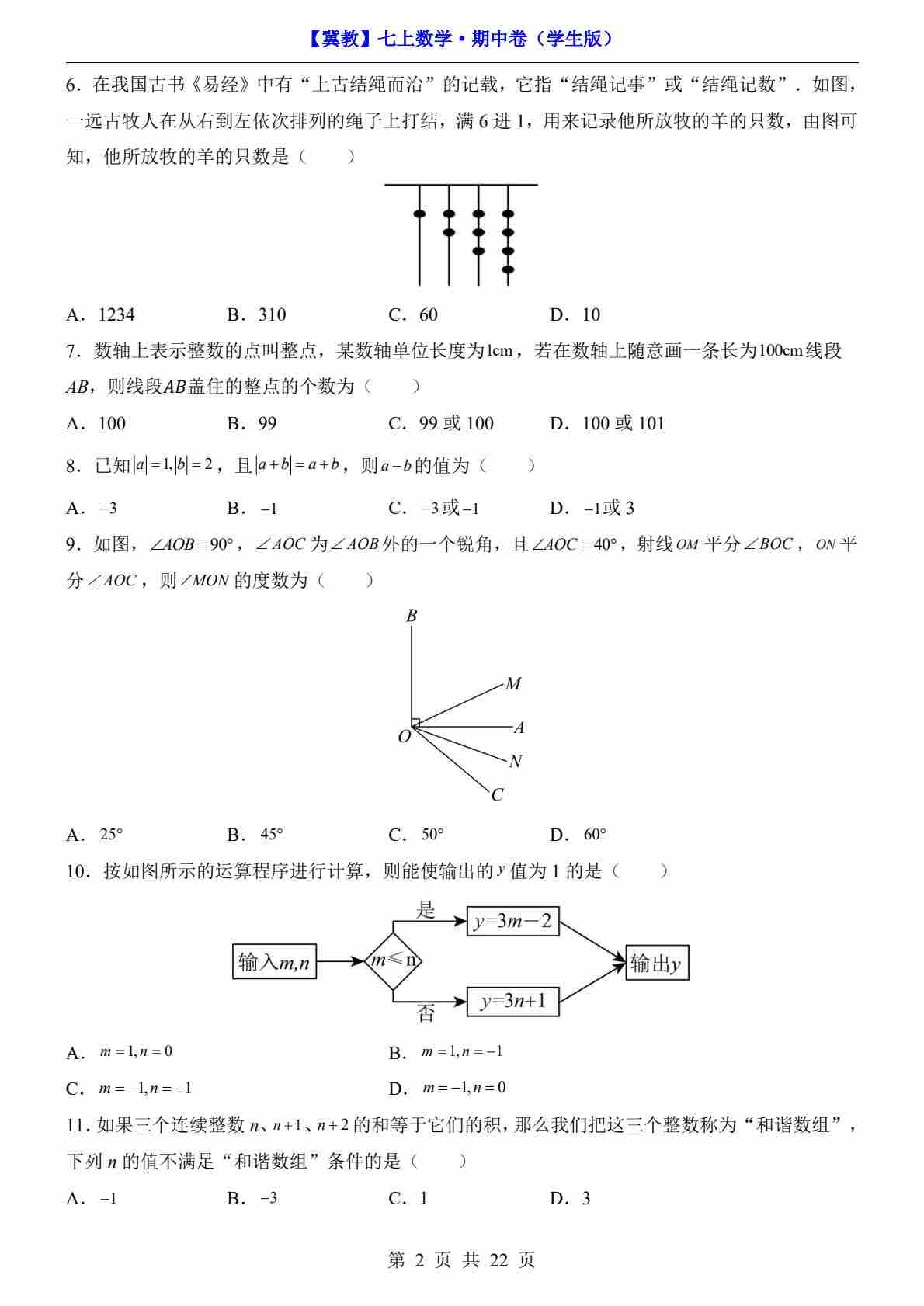 首页 > 全部 > 期中试卷 > 【冀教】7上数学期中卷【第1-3章】