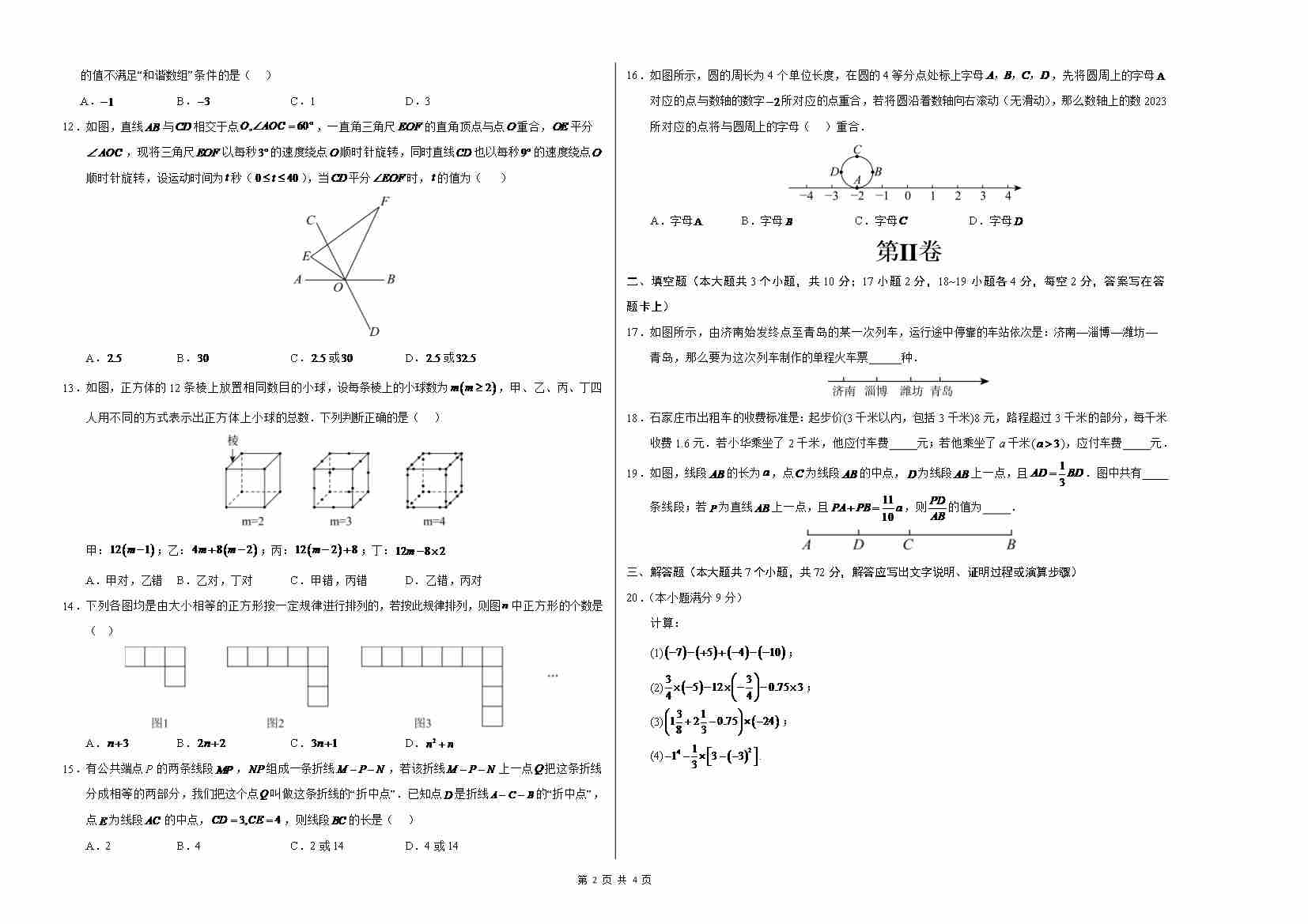 首页 > 全部 > 期中试卷 > 七年级数学期中模拟卷【测试范围:七上第1~3章】(考试版A3)(冀教版2024)