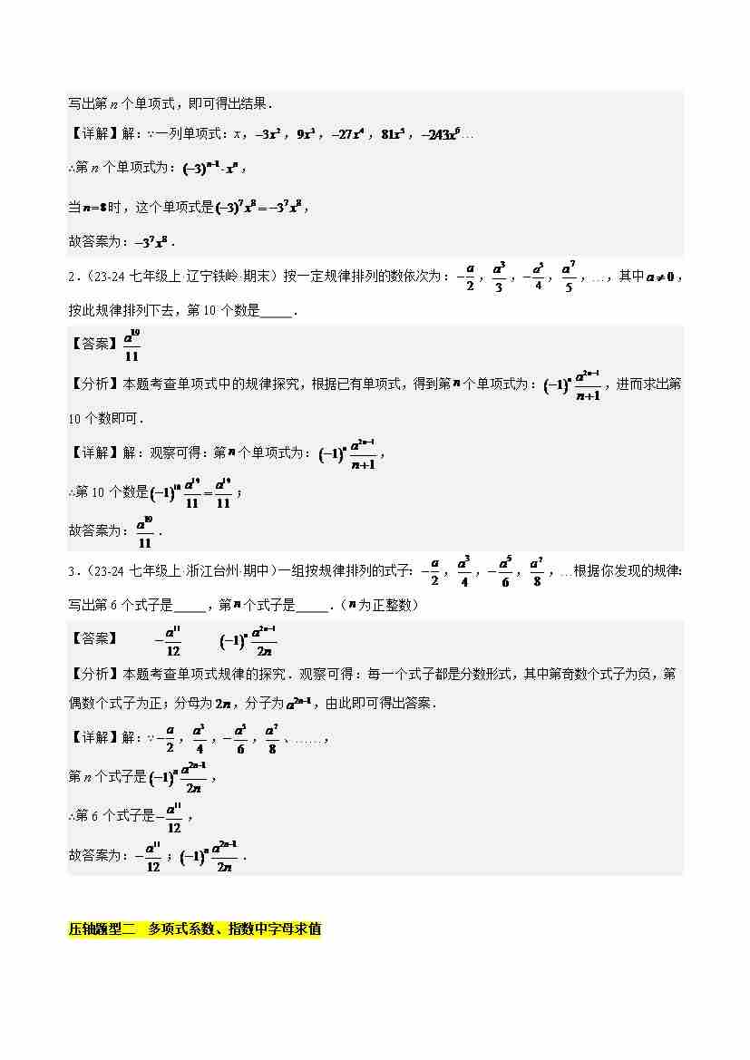 首页 > 全部 > 压轴题 > 第四章 整式的加减压轴训练(单元复习 7类压轴)(解析版)