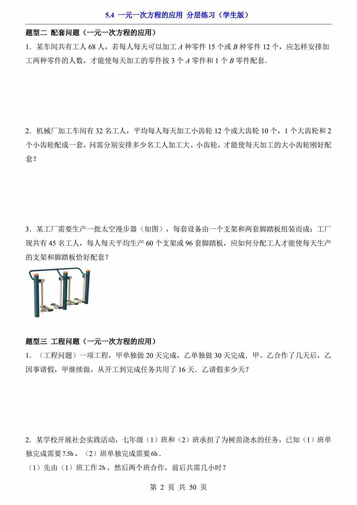 首页 > 全部 > 一课一练 > 5.4 一元一次方程的应用(分层练习)