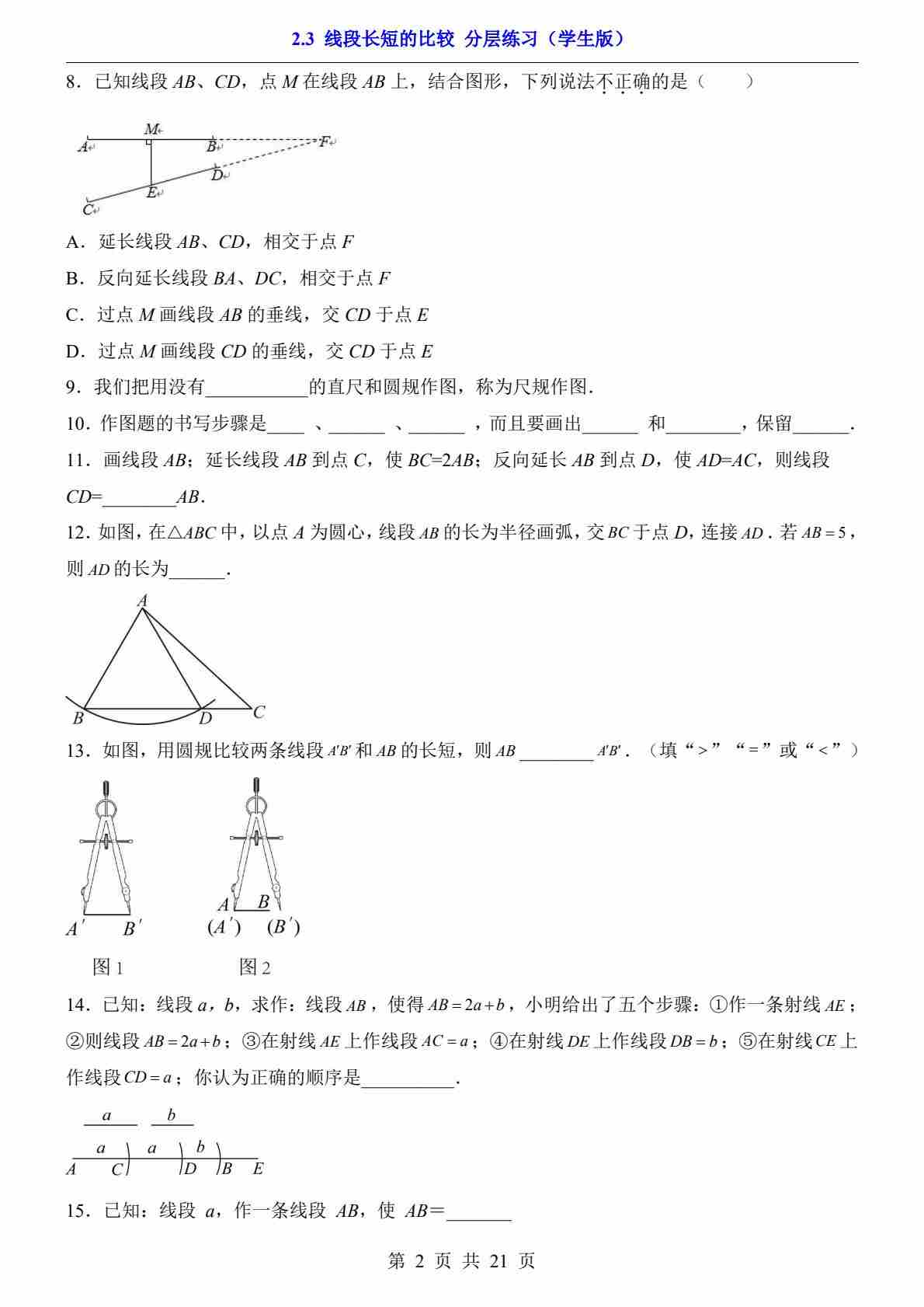 2.3 线段长短的比较(分层练习)