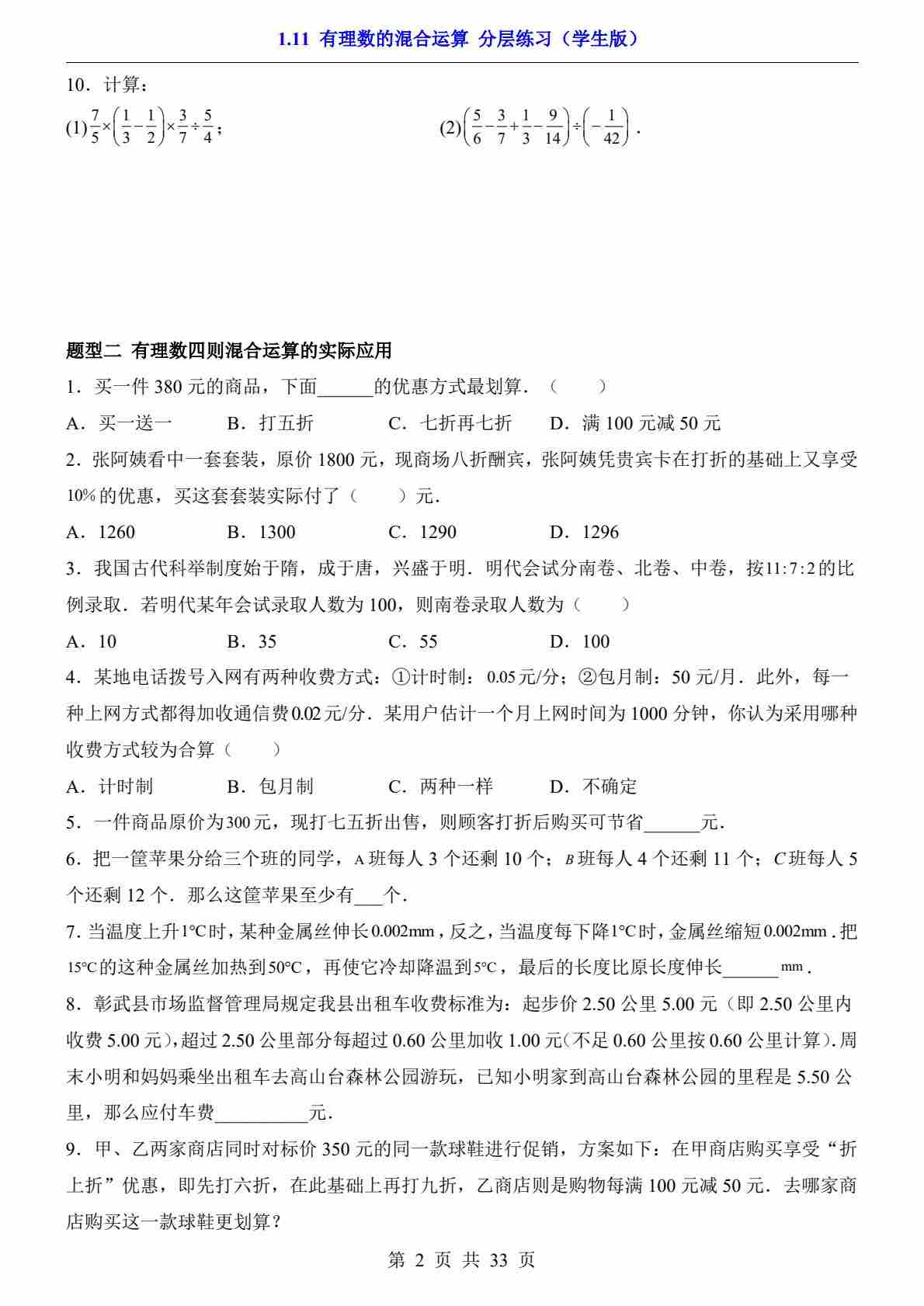 首页 > 全部 > 一课一练 > 1.11 有理数的混合运算(分层练习)