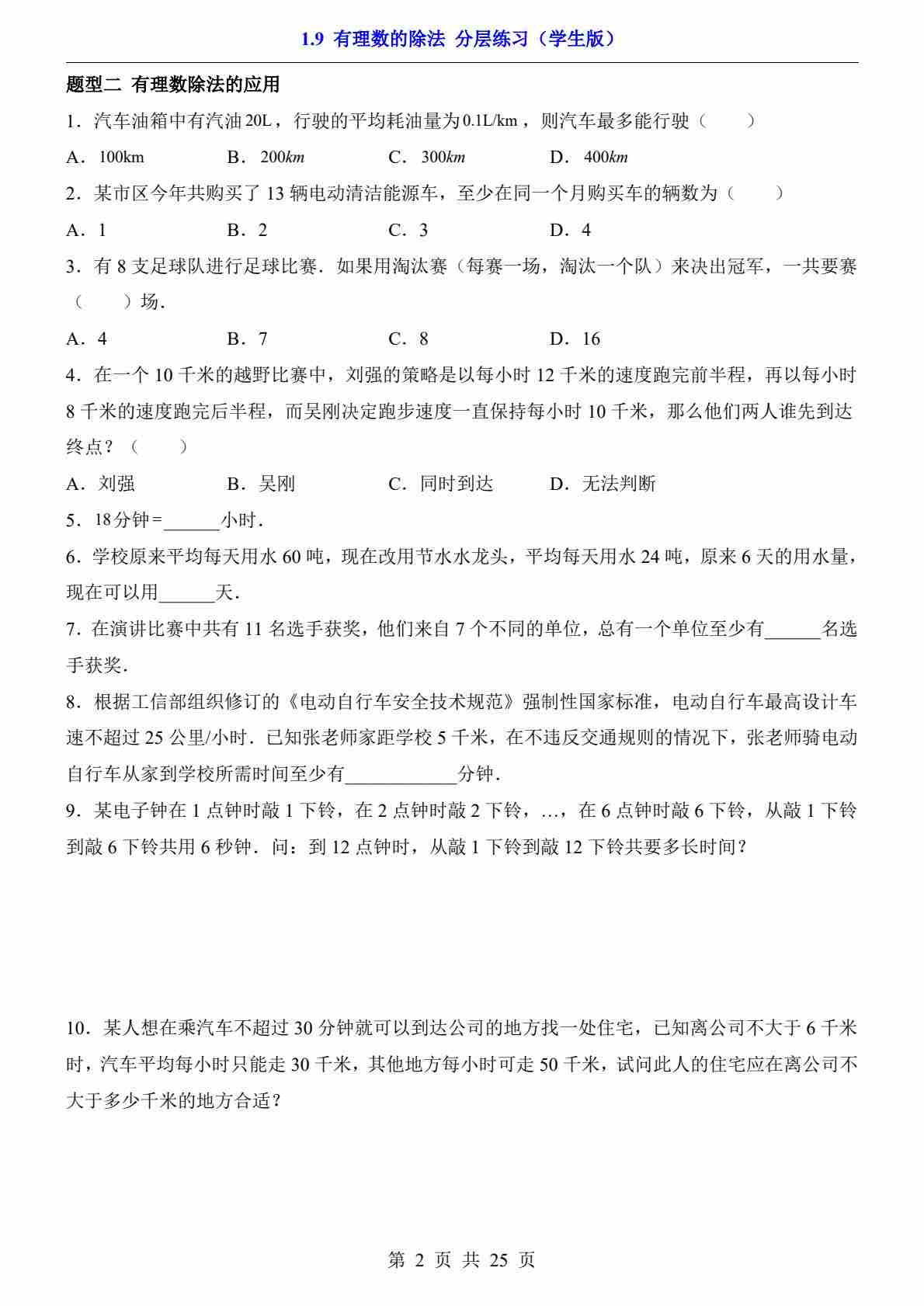 首页 > 全部 > 一课一练 > 1.9 有理数的除法(分层练习)