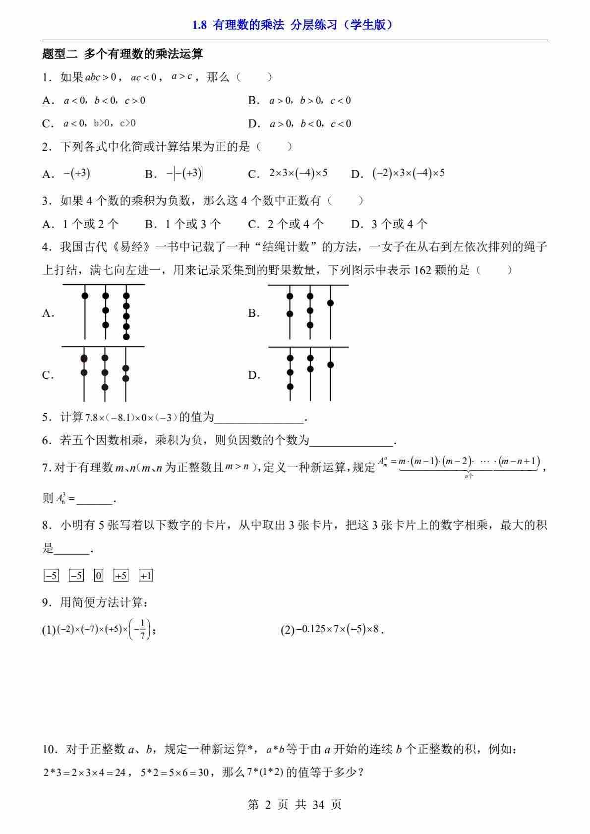 首页 > 全部 > 一课一练 > 1.8 有理数的乘法(分层练习)