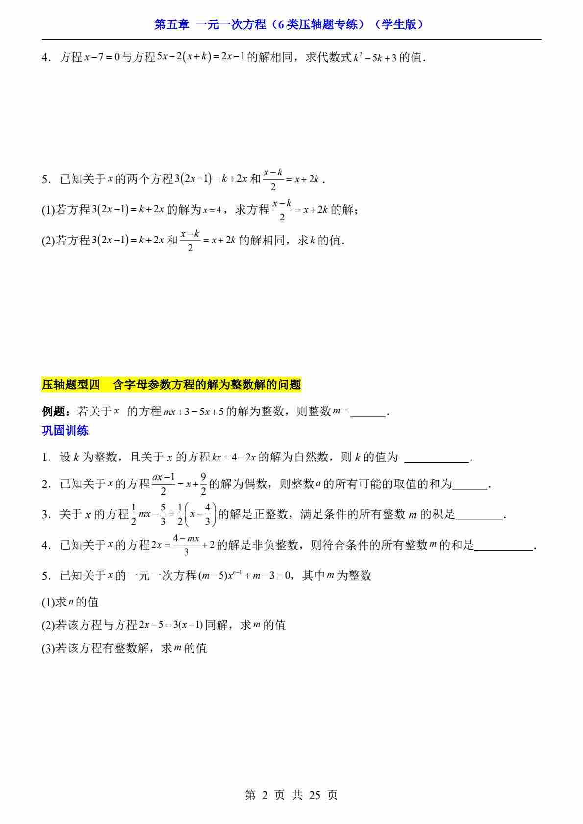 首页 > 全部 > 专项练习 > 第5章 一元一次方程(6类压轴题专练)
