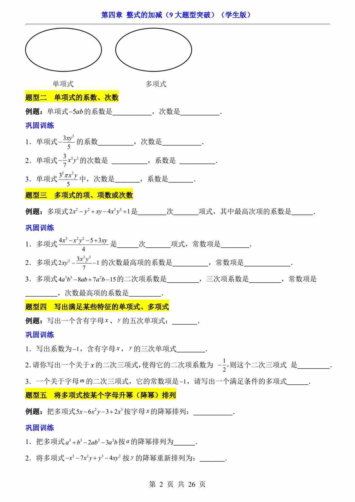 首页 > 全部 > 专项练习 > 第4章 整式的加减(9大题型突破)