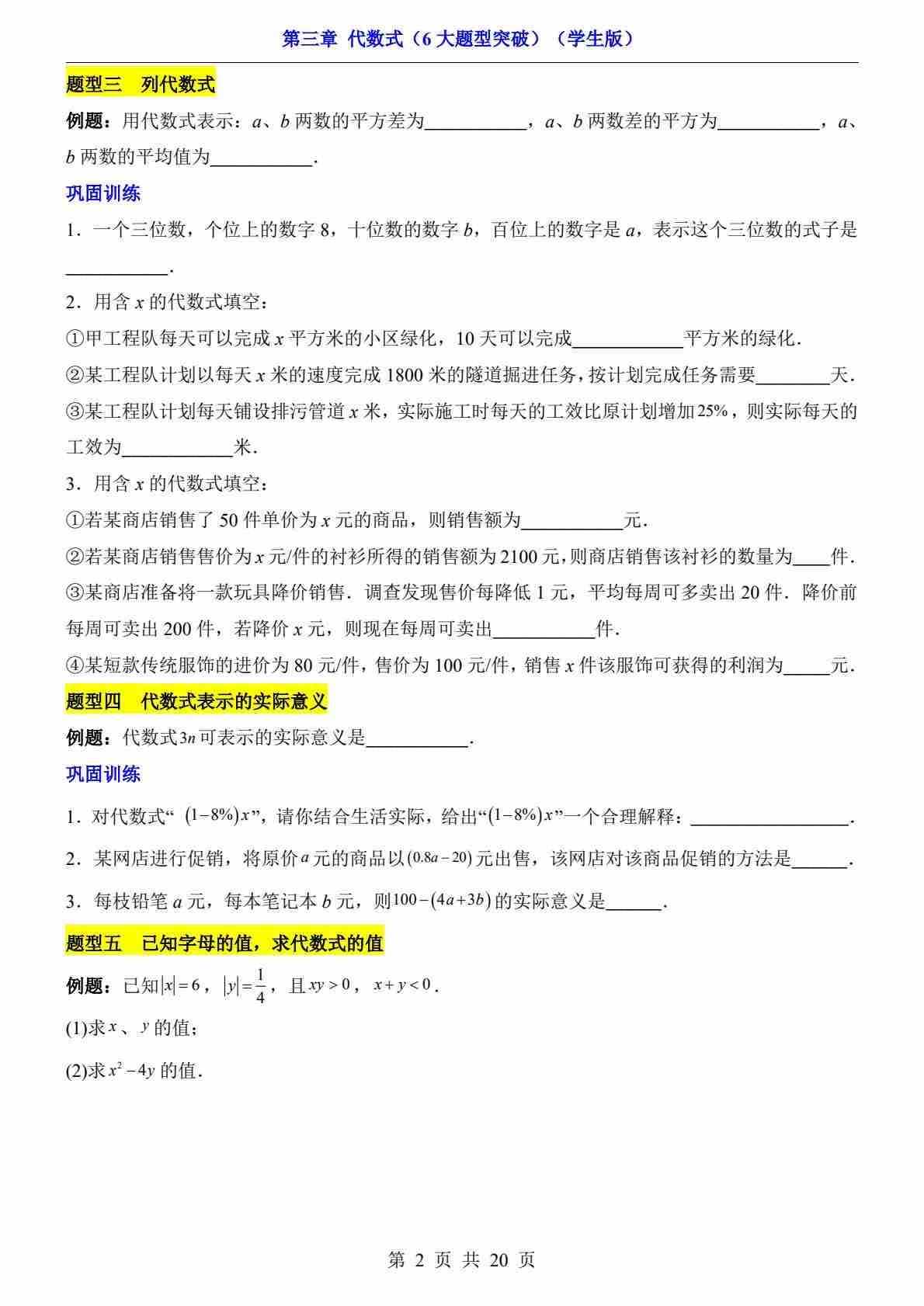 首页 > 全部 > 专项练习 > 第3章 代数式(6大题型突破)
