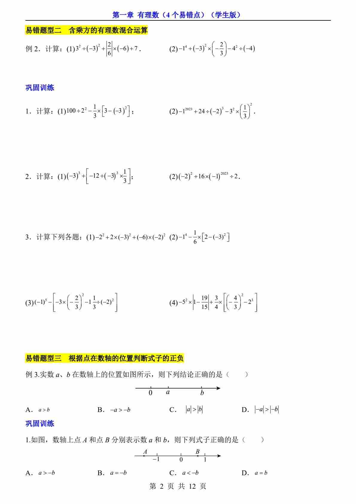 首页 > 全部 > 专项练习 > 第1章 有理数(4个易错点)