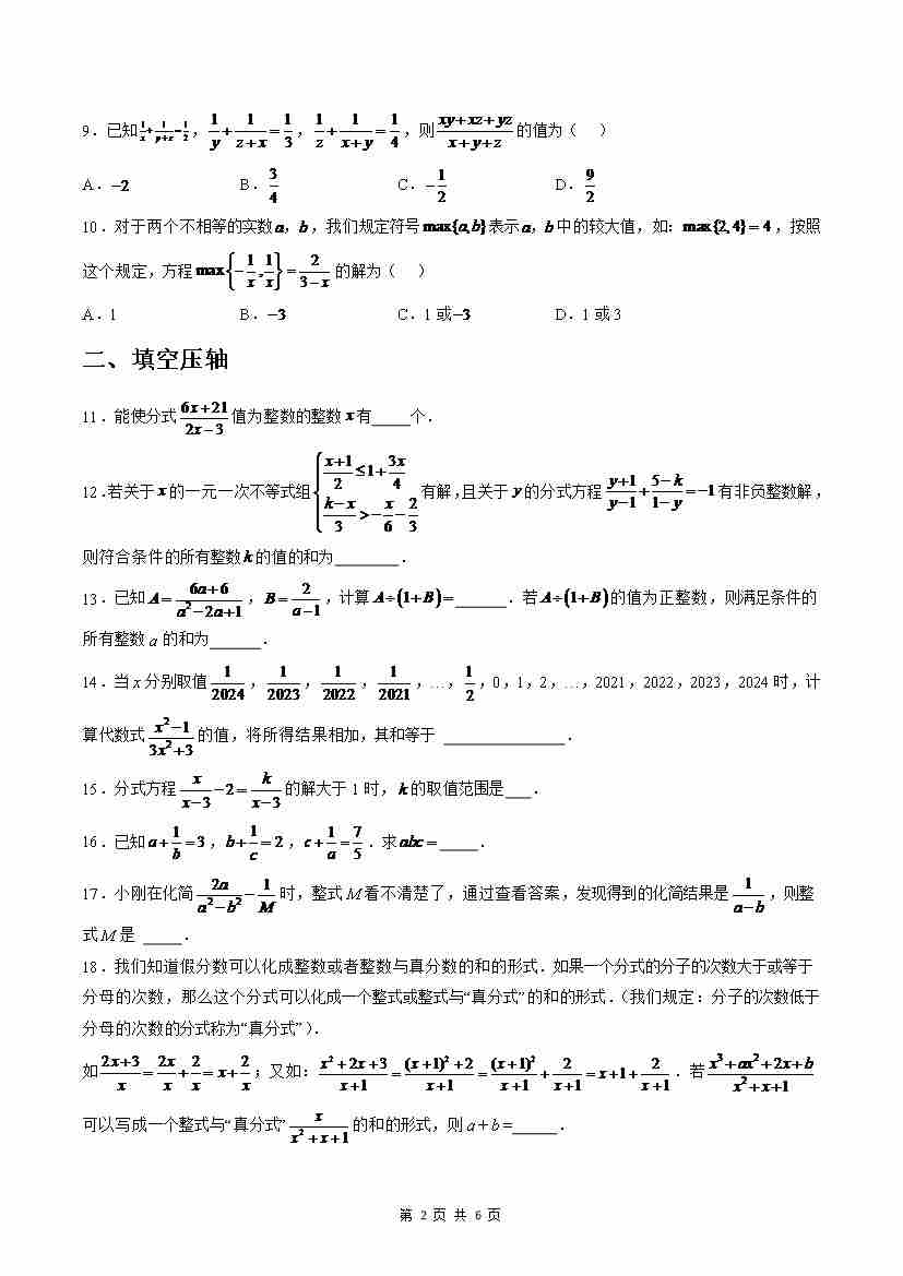 首页 > 全部 > 常考压轴题 > 【沪教】第13章:分式压轴训练(原卷版)