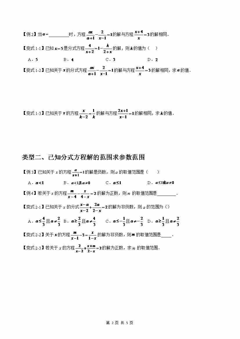 首页 > 全部 > 常考压轴题 > 【沪教】专题05:分式方程求参问题(五大类型)(原卷版)