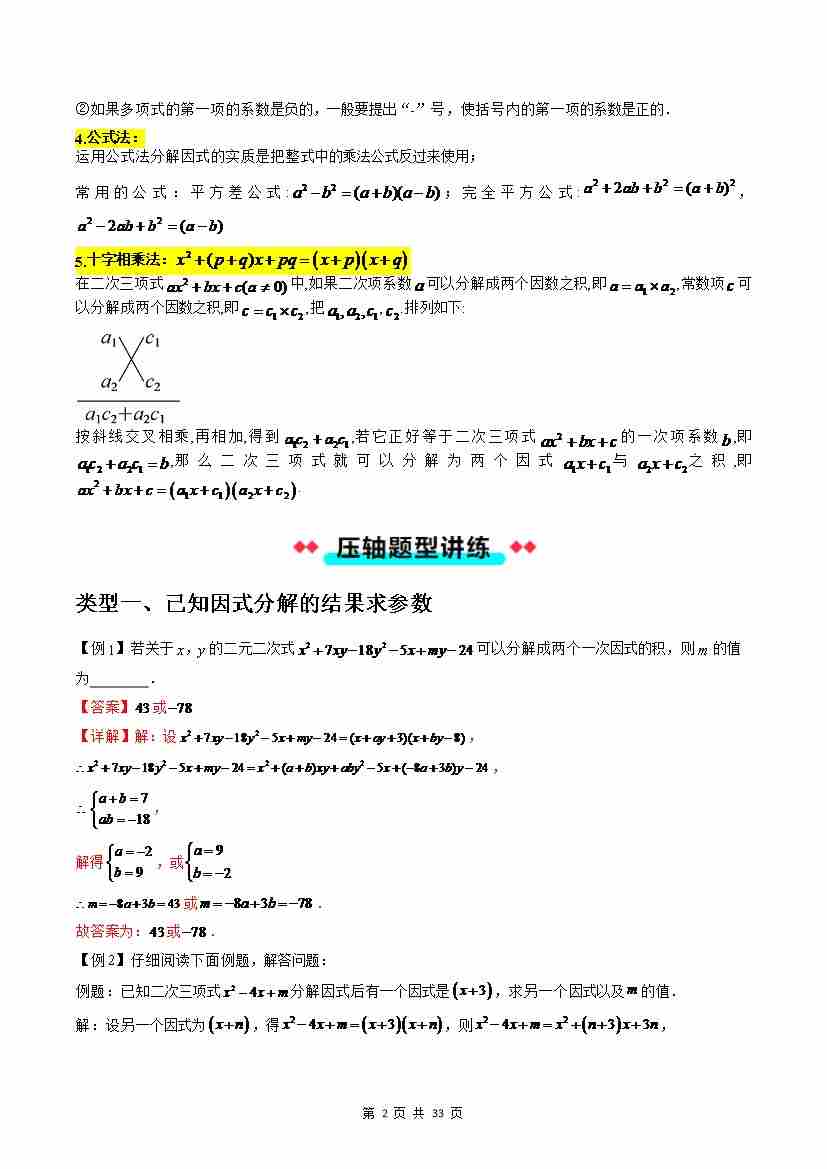 首页 > 全部 > 常考压轴题 > 【沪教】专题04:因式分解的化简技巧及求值(六大类型)(解析版)