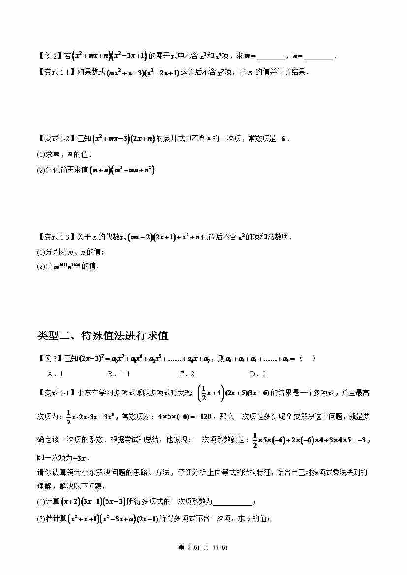 首页 > 全部 > 常考压轴题 > 【沪教】专题02:整式乘除的求值问题(五大类型)(原卷版)