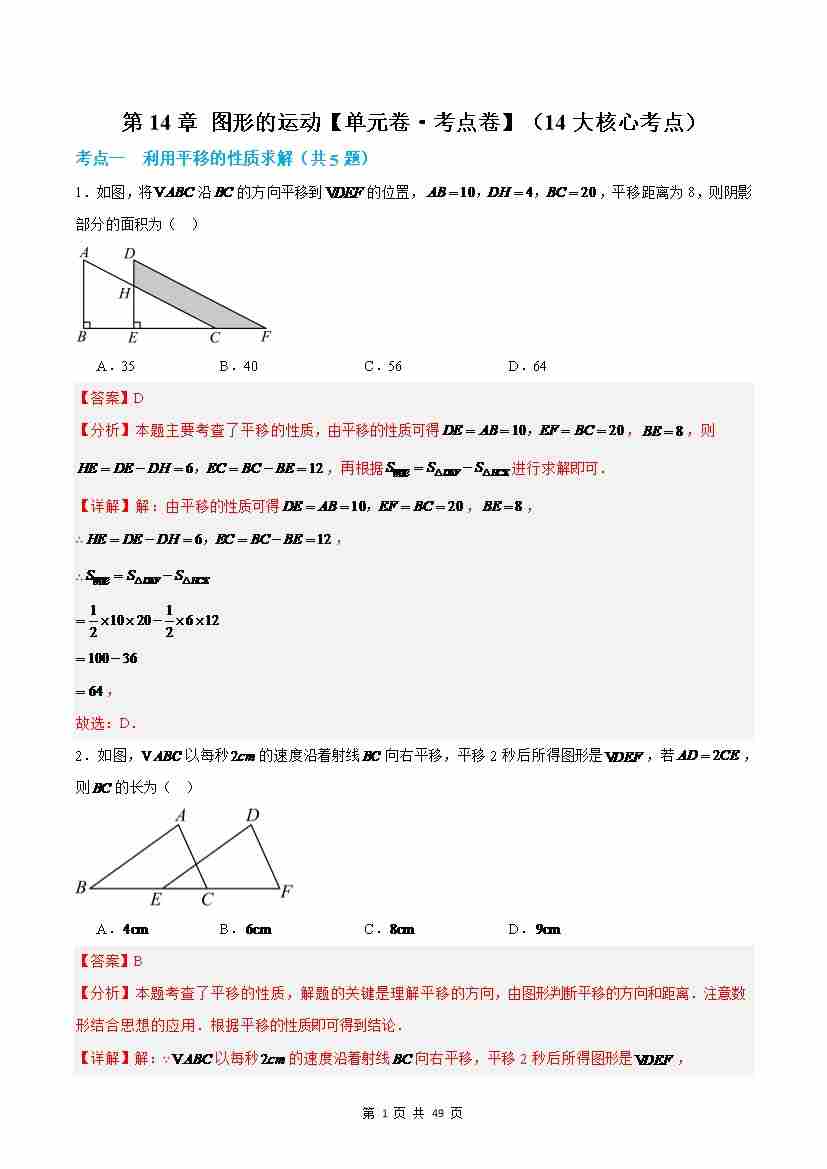 第14章:图形的运动【单元卷·考点卷】(沪教版2024)(解析版)
