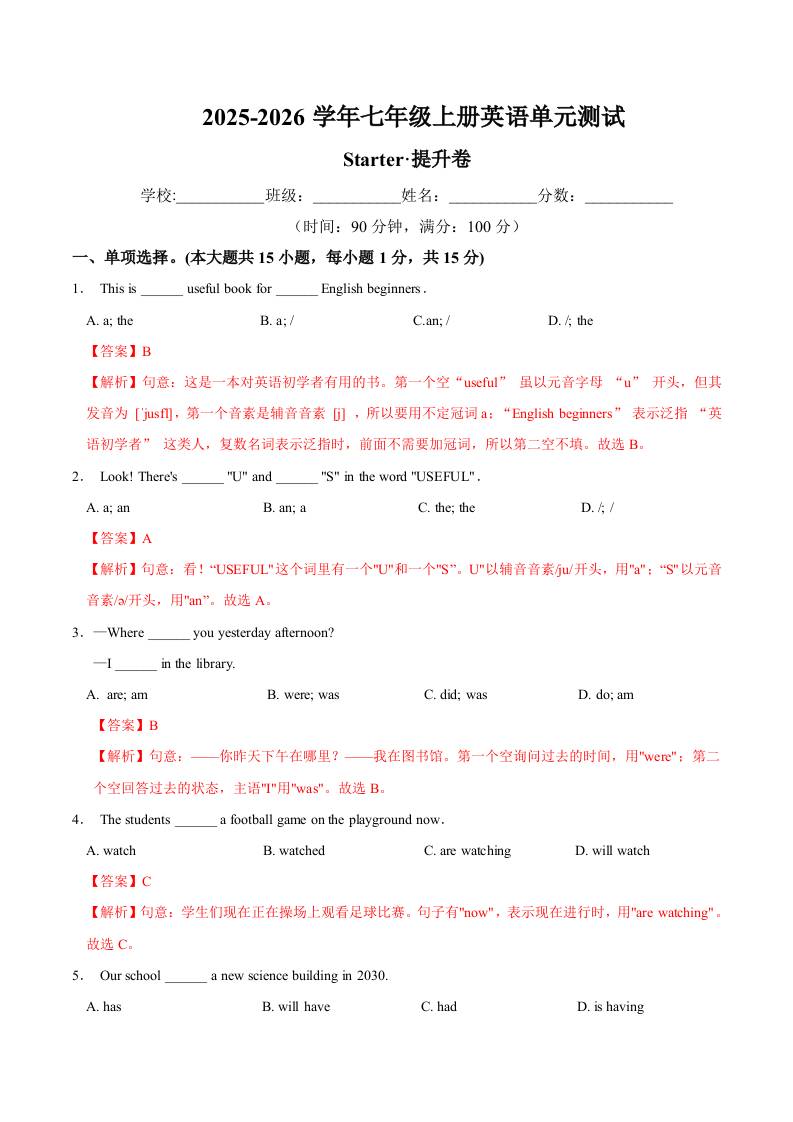 首页 > 全部 > 单元测试 > Starter单元测试·提升卷(教师版)