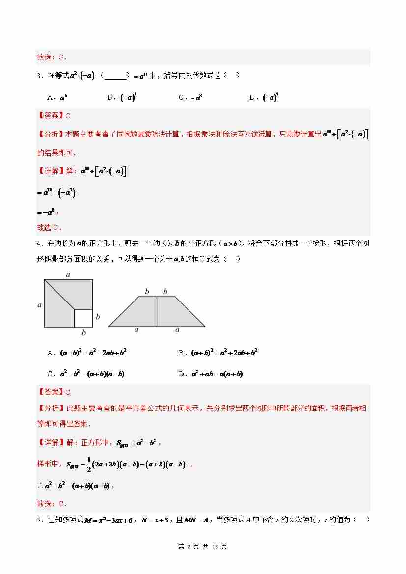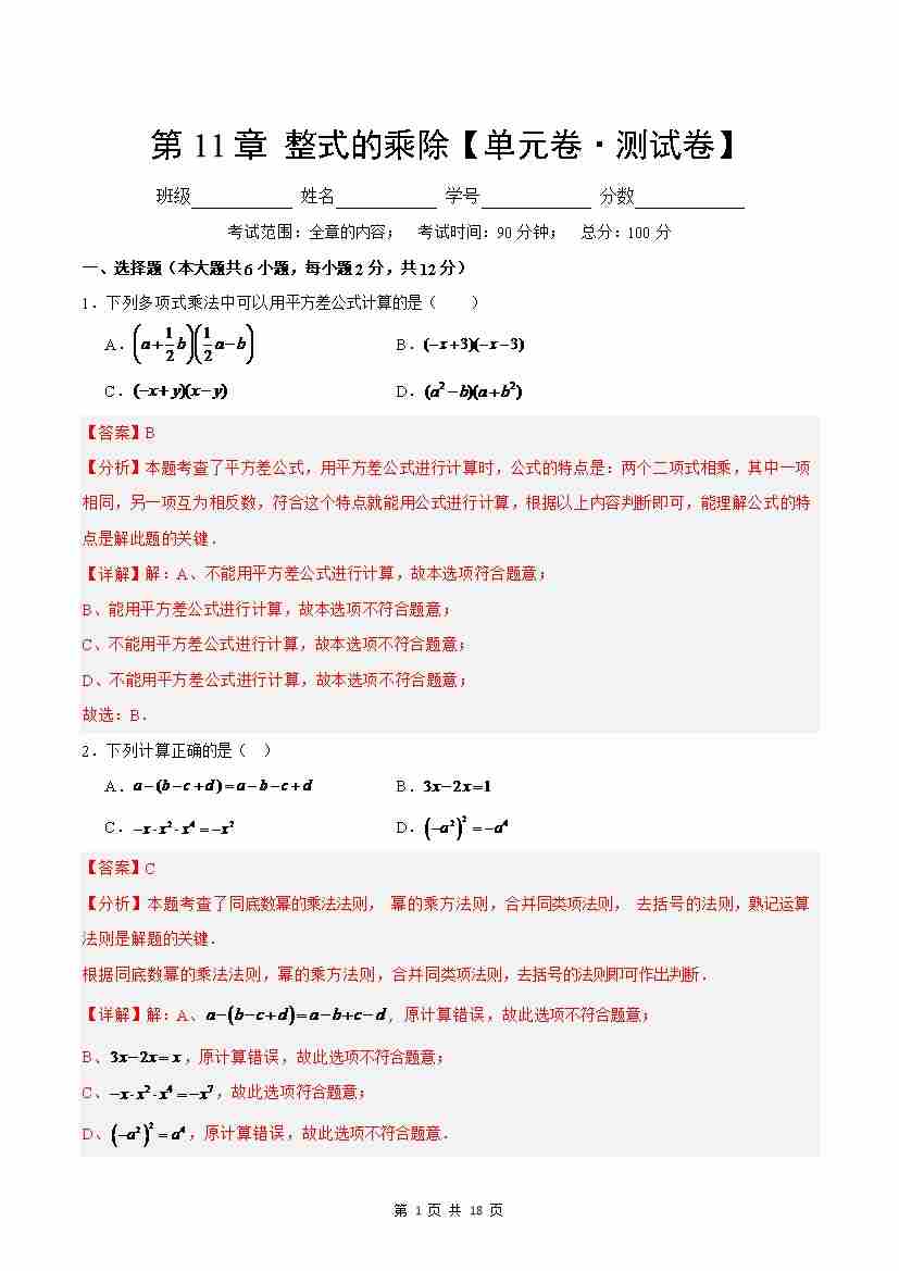 首页 > 全部 > 单元AB卷 > 第11章:整式的乘除【单元卷·测试卷】(沪教版2024)(解析版)