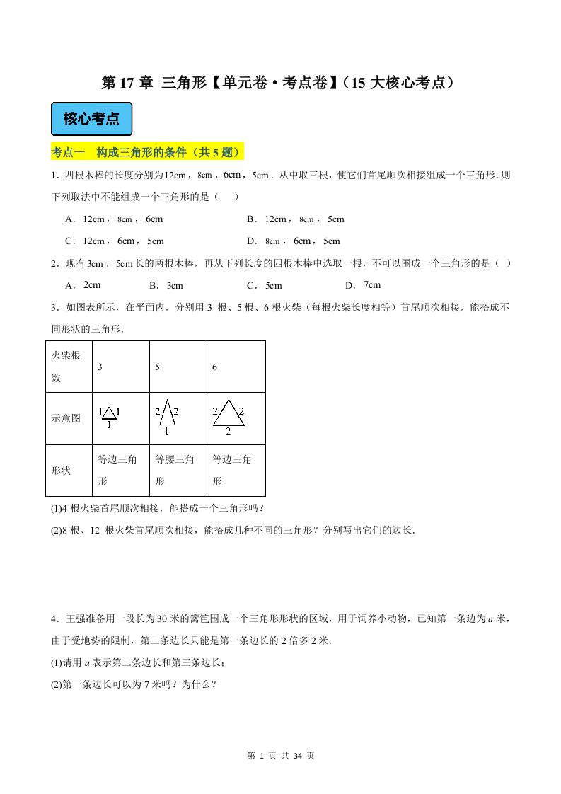 首页 > 全部 > 单元速记 > 第17章 三角形【单元卷·考点卷】(15大核心考点)(原卷版)