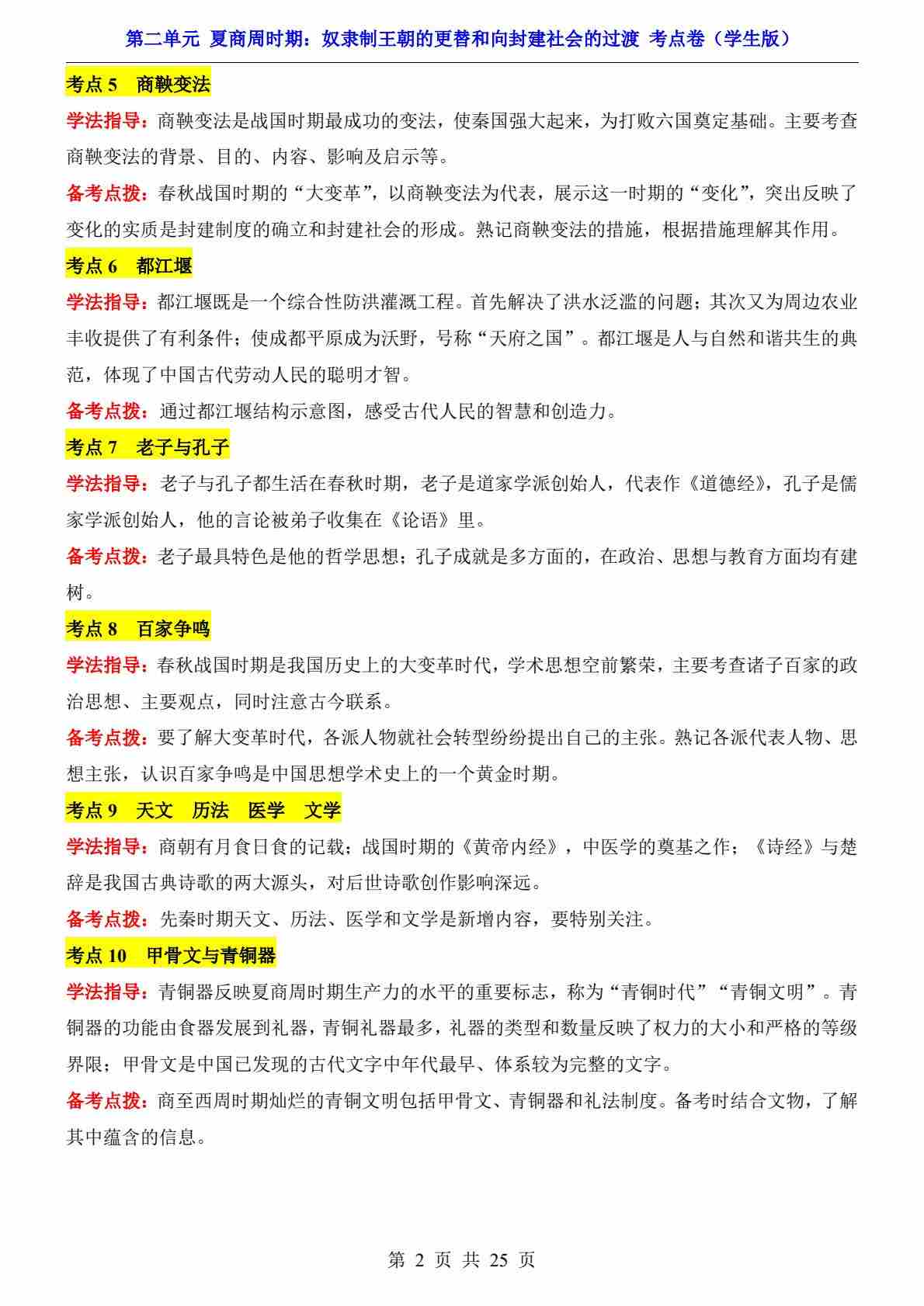 首页 > 全部 > 单元检测 > 第2单元 夏商周时期(考点卷)