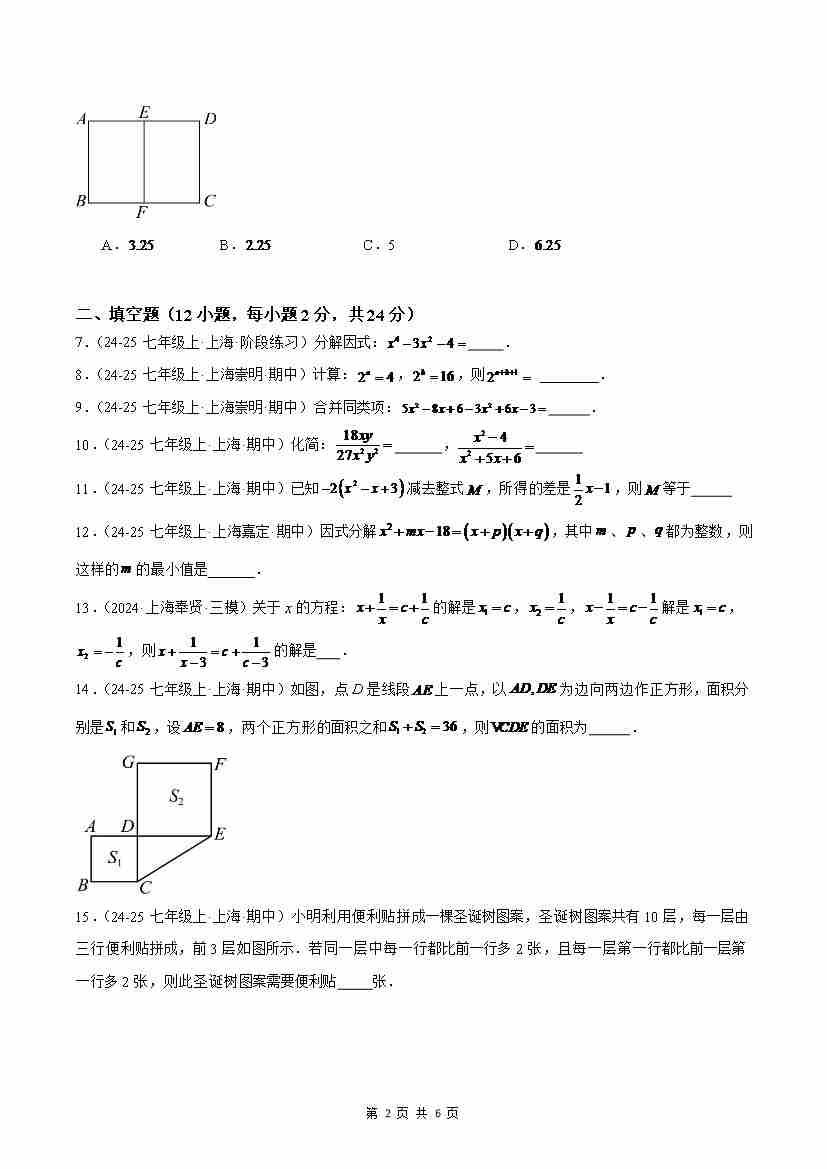 首页 > 全部 > 期末试卷 > 七上数学期末押题重难点检测卷(提高卷)(沪教版2024)(原卷版)