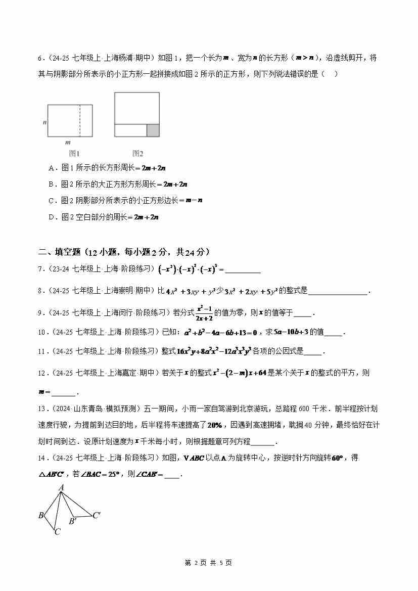 首页 > 全部 > 期末试卷 > 七上数学期末押题重难点检测卷(培优卷)(沪教版2024)(原卷版)