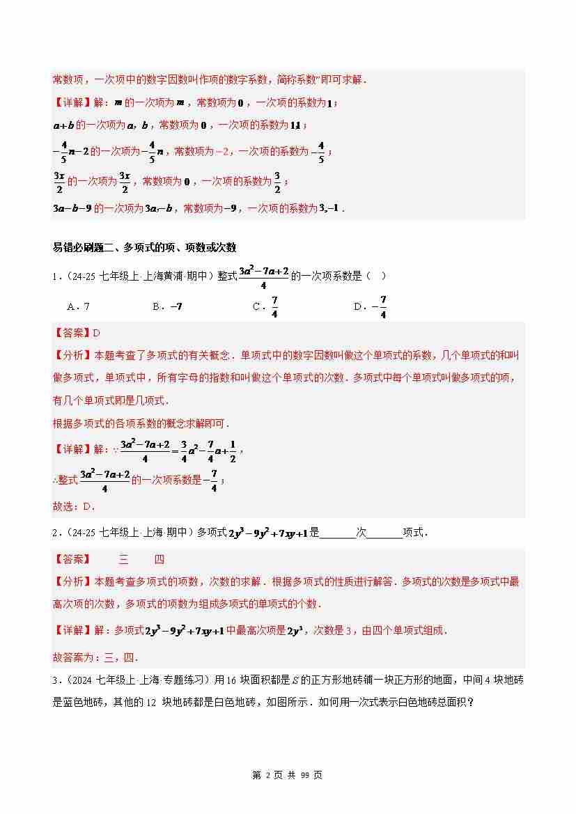 首页 > 全部 > 期末专项 > 七上数学期末重难点真题特训之易错必刷题型(138题41个考点)(沪教版2024)(解析版)