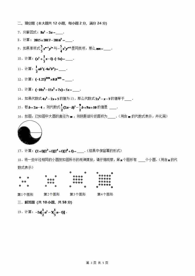 七上数学期中模拟卷01(沪教版2024)原卷版