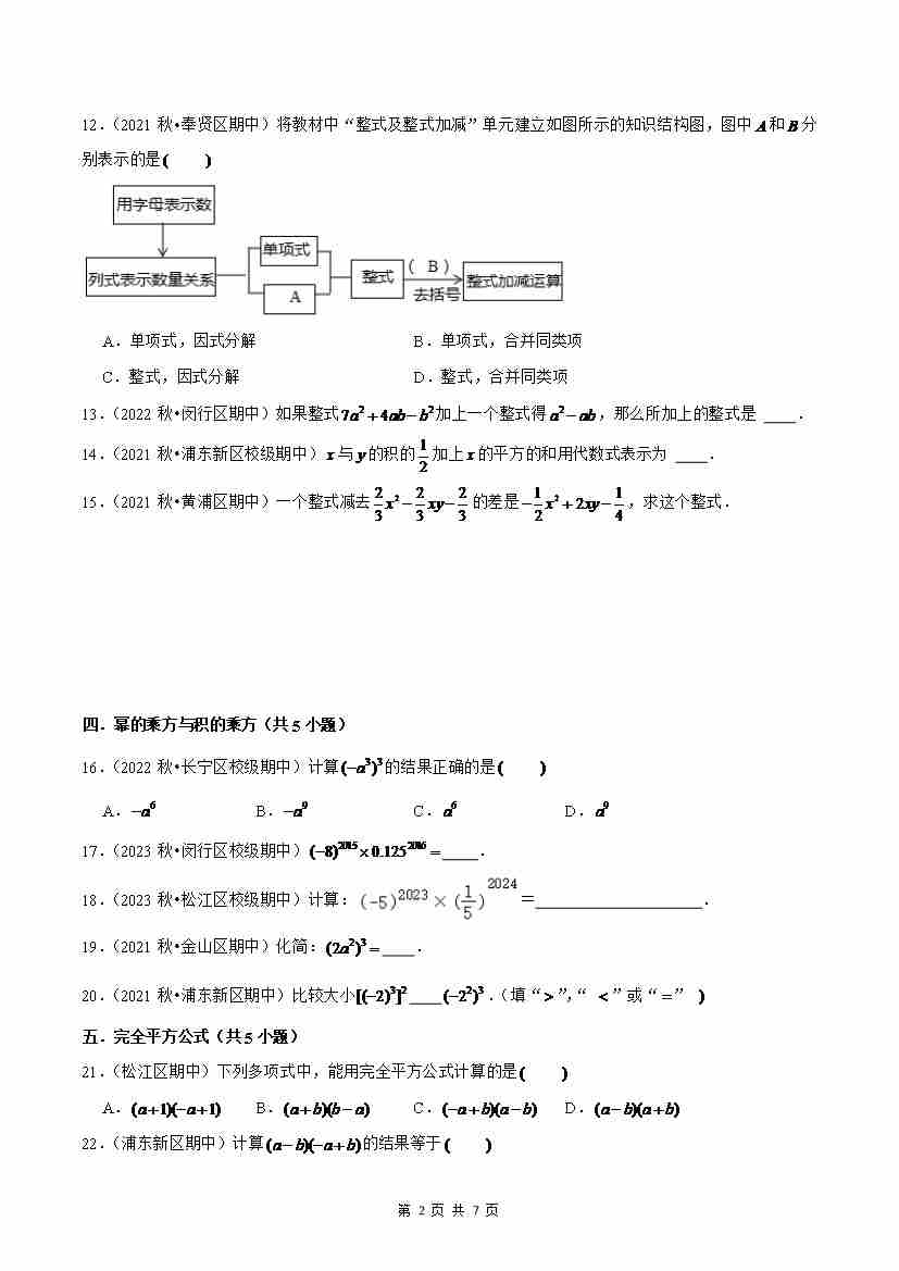 首页 > 全部 > 期中专项 > 七上数学期中真题必刷基础60题(12个考点专练)原卷版