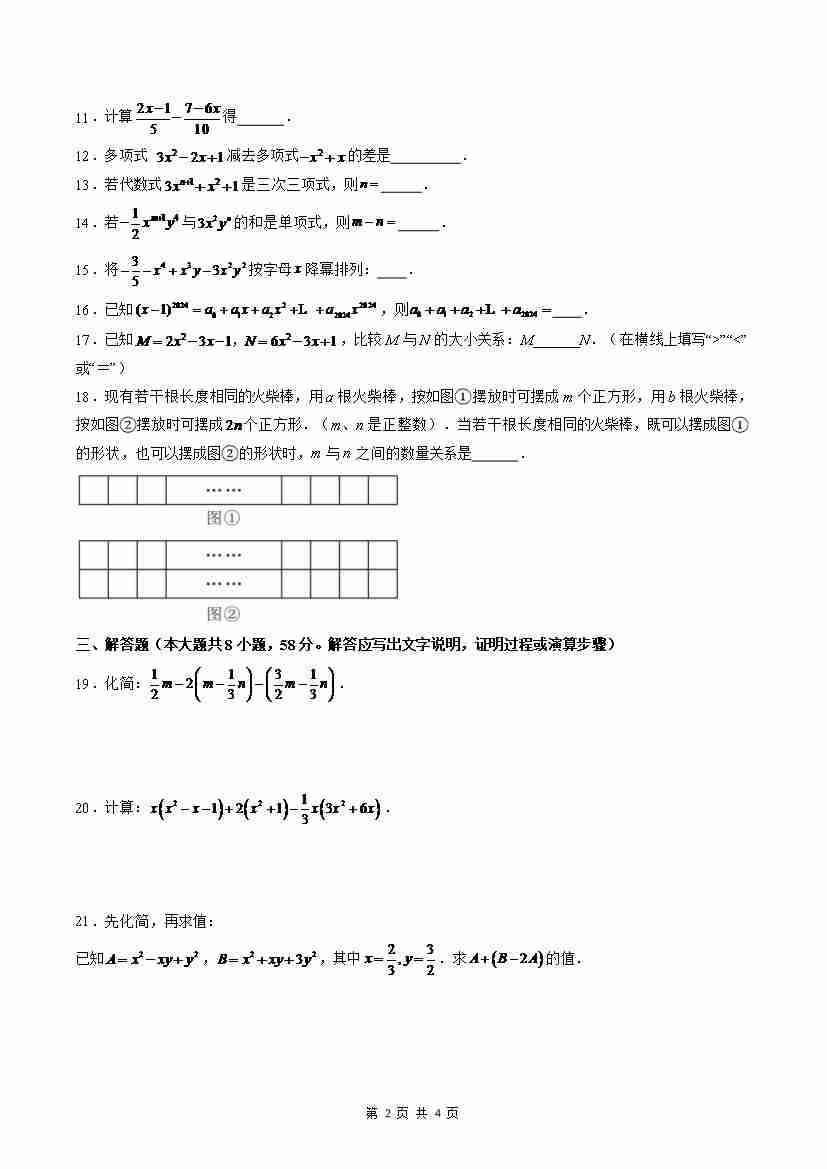 首页 > 全部 > 暑假讲义 > 【沪教】第10章:整式的加减(单元测试)(原卷版)