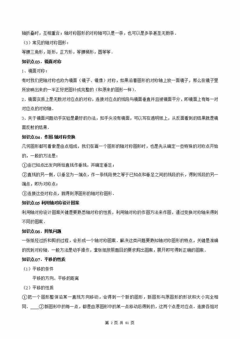 首页 > 全部 > 题型突破 > 第14章:图形的运动知识归纳与题型突破(14类题型清单)(沪教版2024)(解析版)
