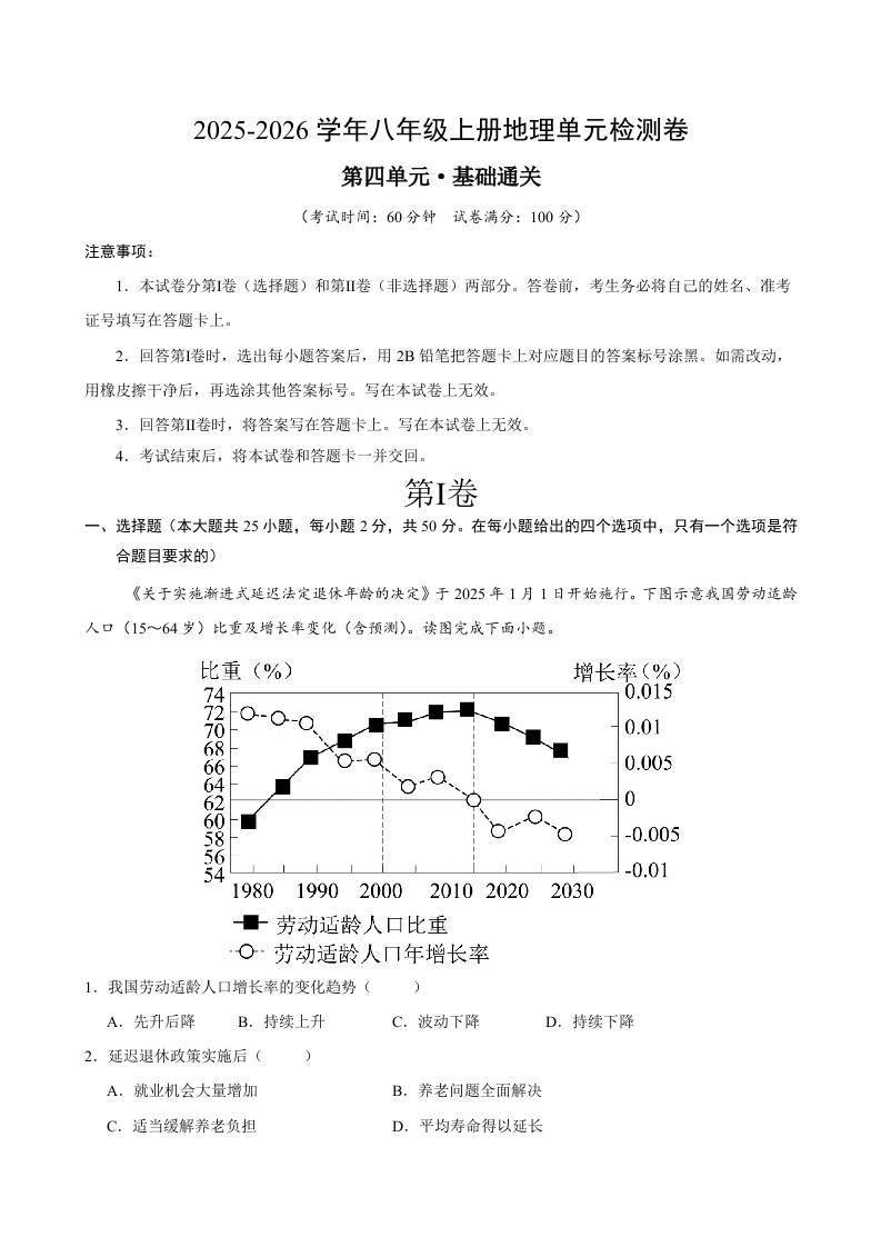 首页 > 全部 > 单元基础卷 > 八上地理 第四章测试·基础卷(详解版)