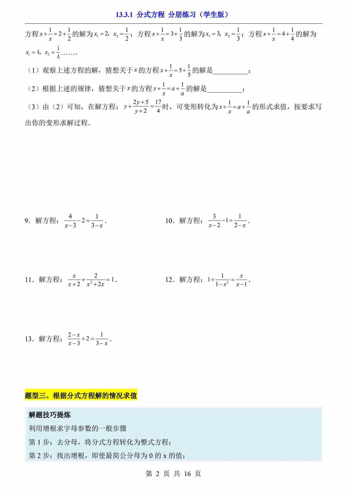 13.3.1 分式方程(分层练习)