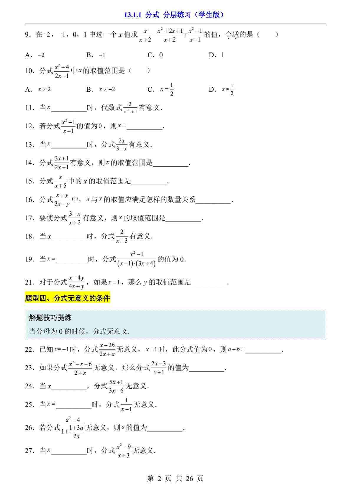 首页 > 全部 > 一课一练 > 13.1.1 分式(分层练习)