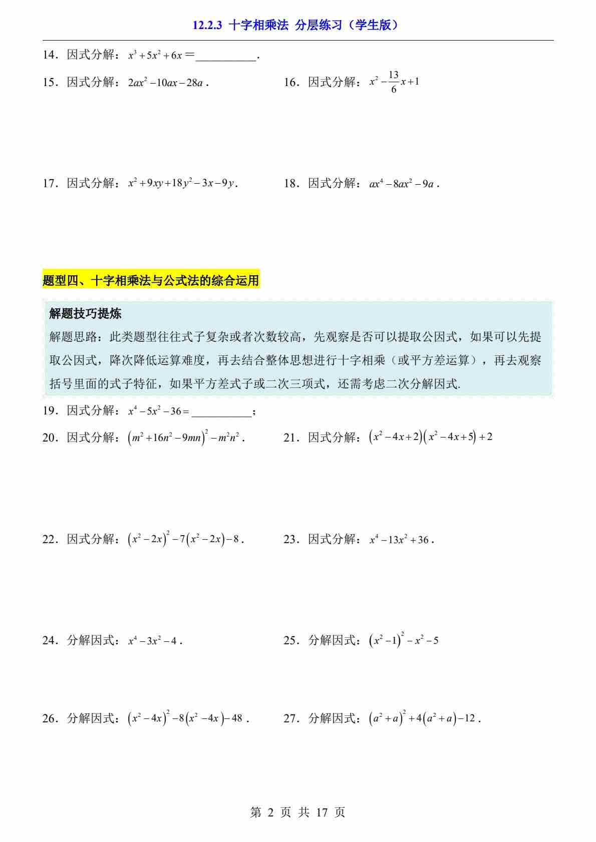 首页 > 全部 > 一课一练 > 12.2.3 十字相乘法(分层练习)