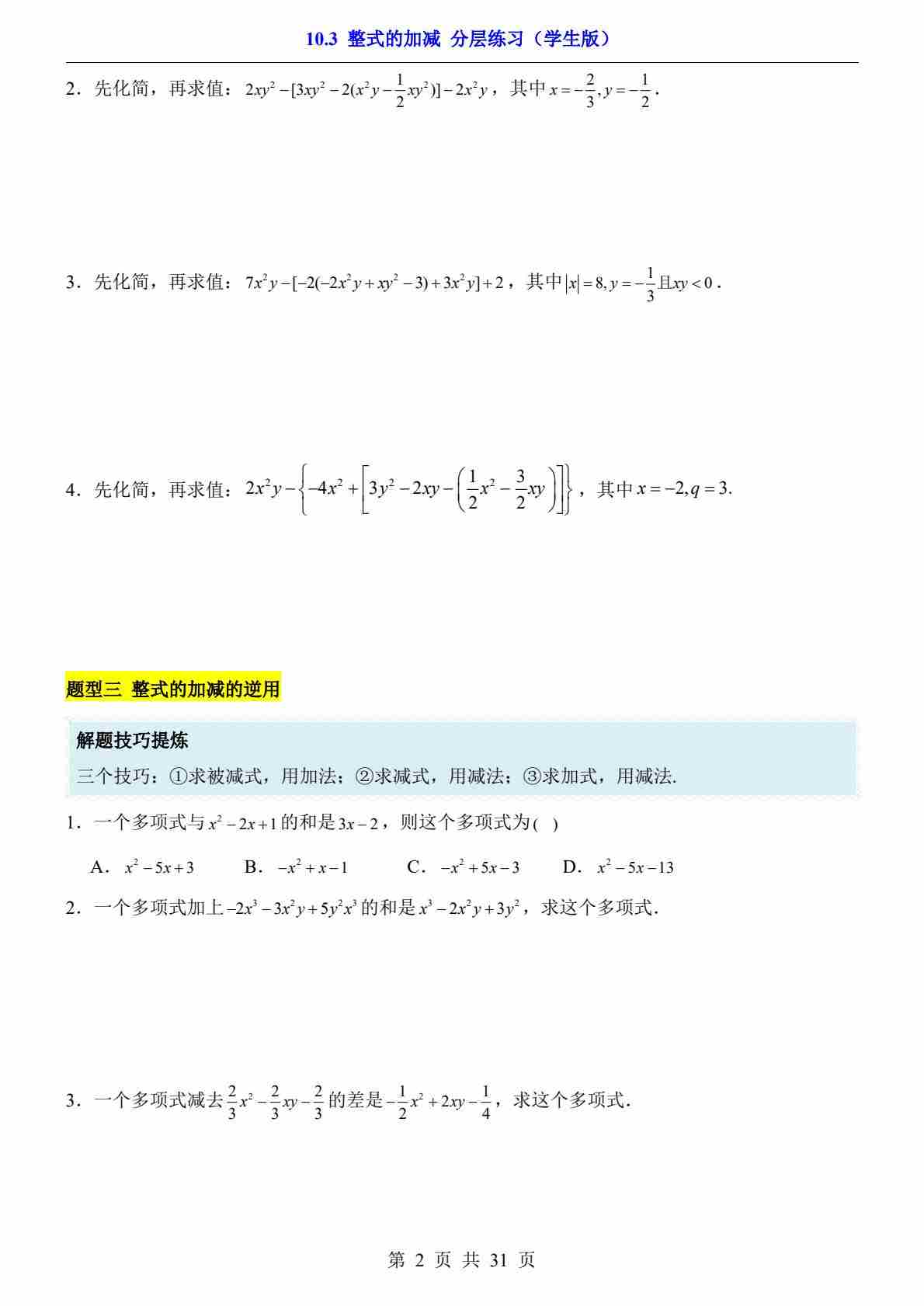 首页 > 全部 > 一课一练 > 10.3 整式的加减(分层练习)