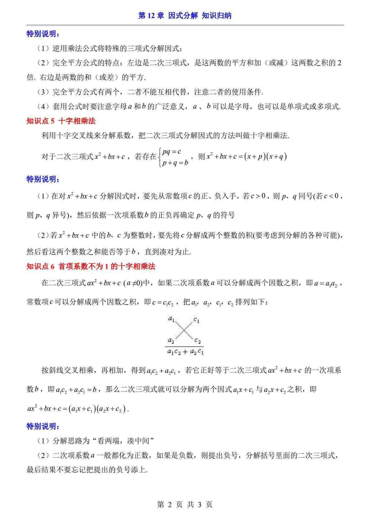 第12章 因式分解(知识归纳)