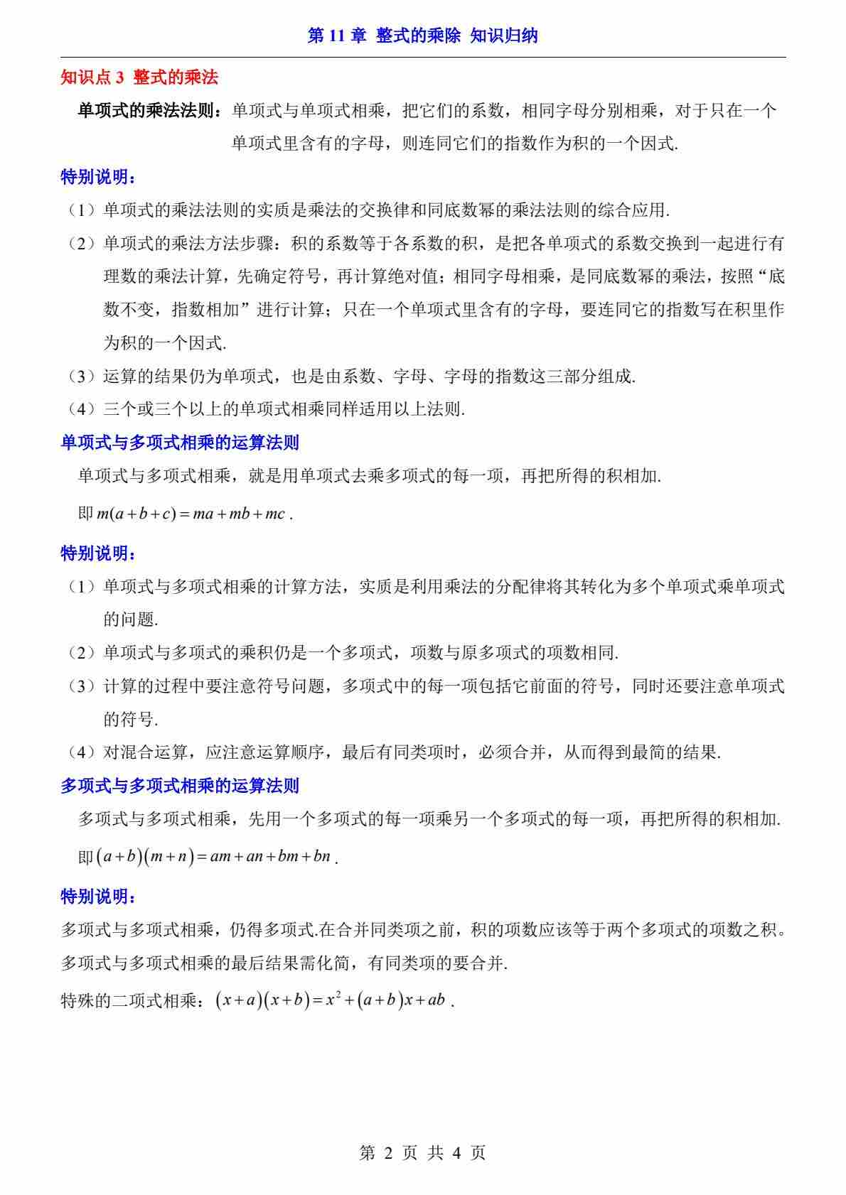 首页 > 全部 > 知识梳理 > 第11章 整式的乘除(知识归纳)