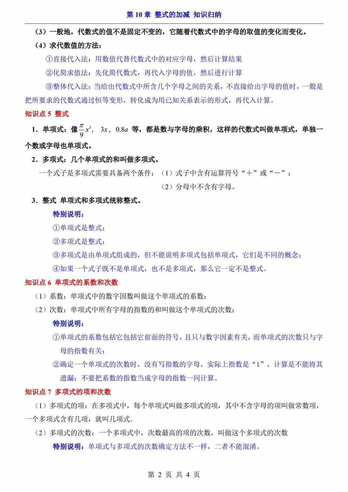 第10章 整式的加减(知识归纳)